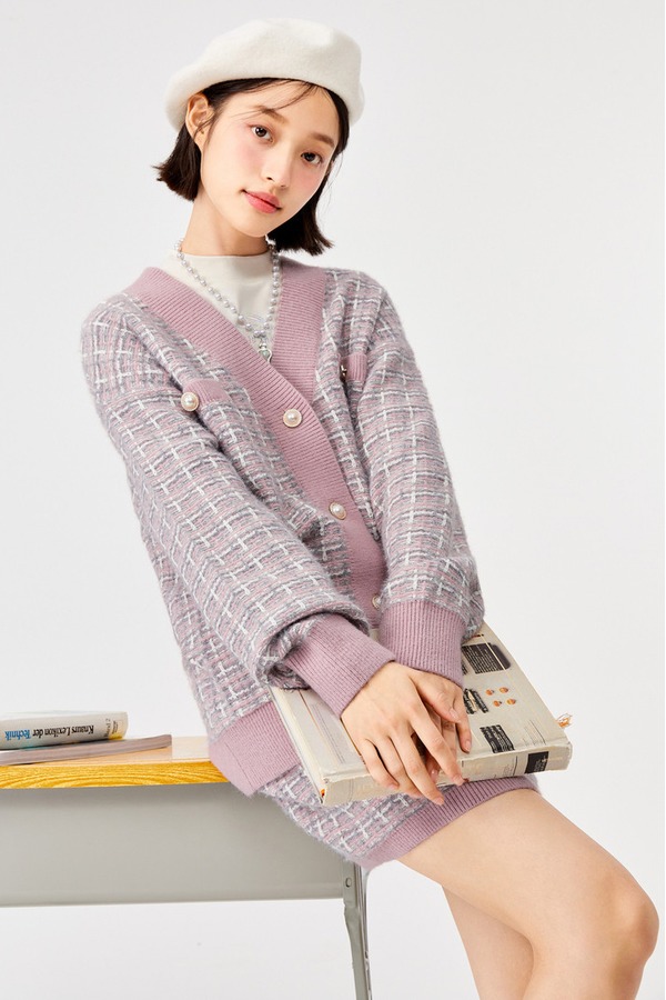 SEM/R森马 小香撞色开衫半裙针织套装 15128