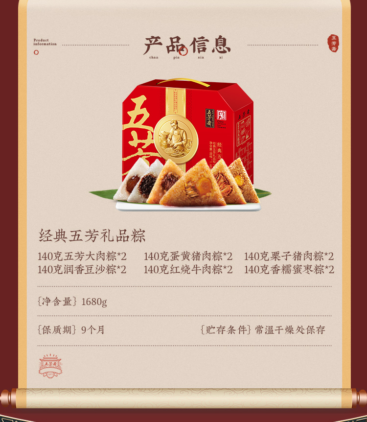 【粽子】五芳斋 经典五芳礼盒(1680g)
