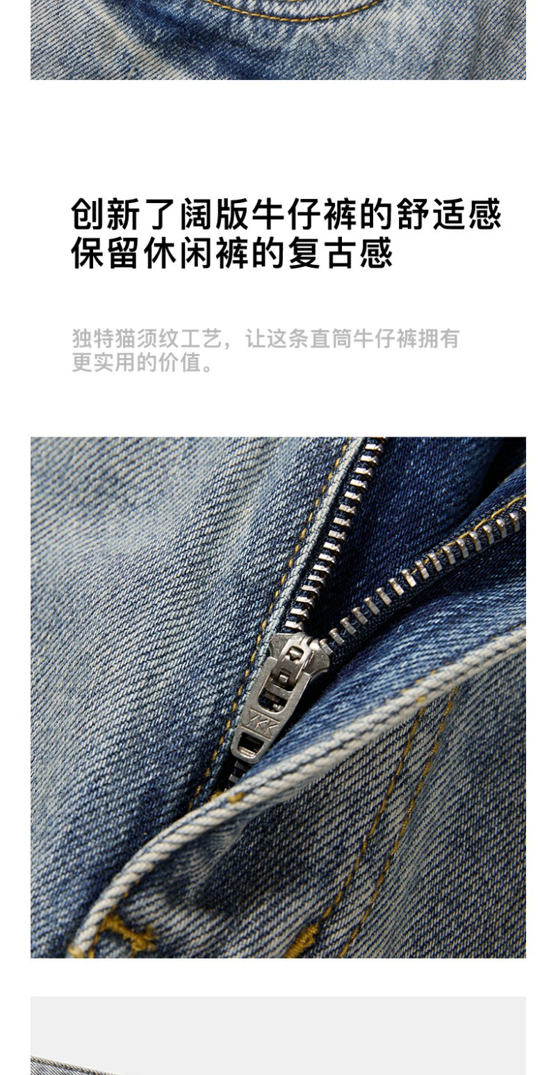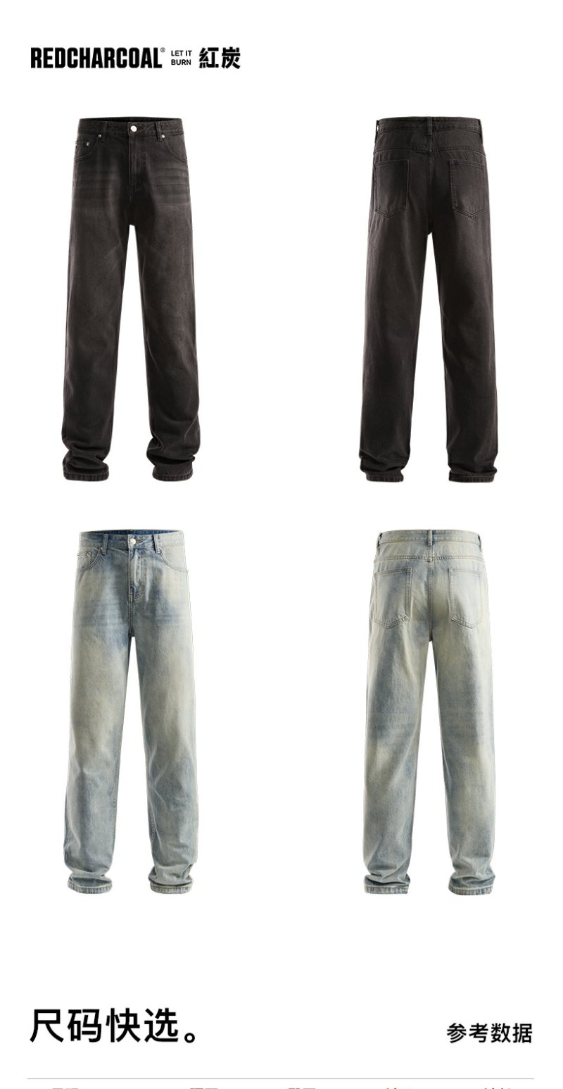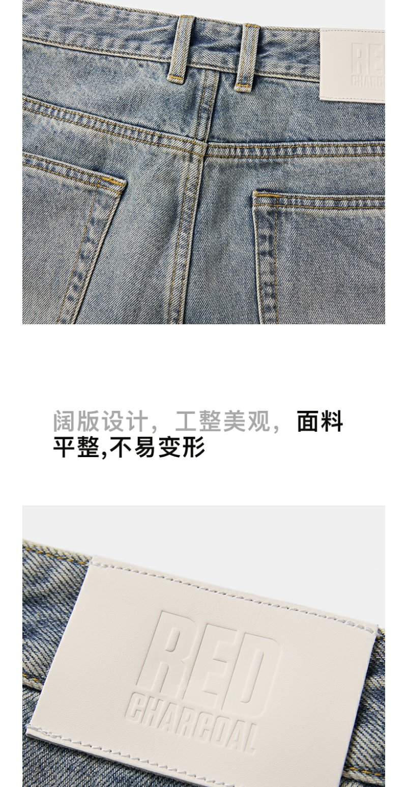 REDCHARCOAL红炭 0086版型系列浅色牛仔裤男经典基础版水洗直筒裤