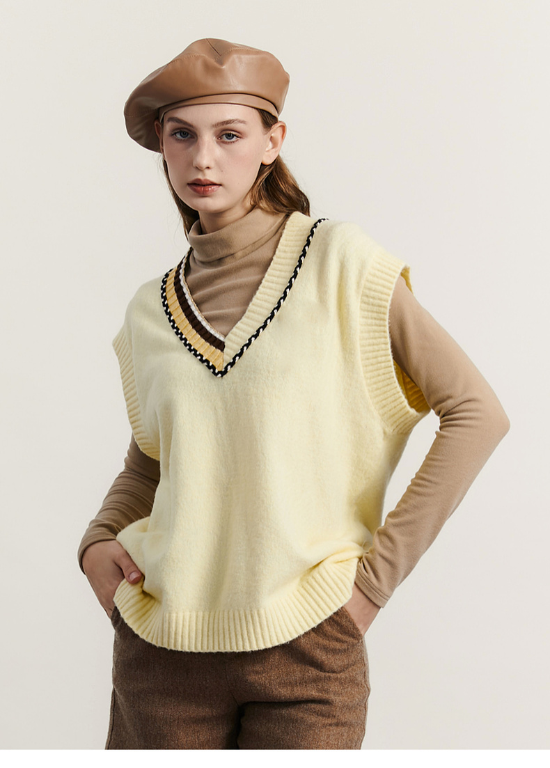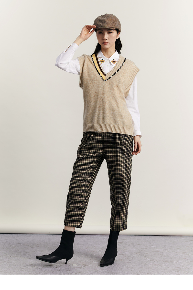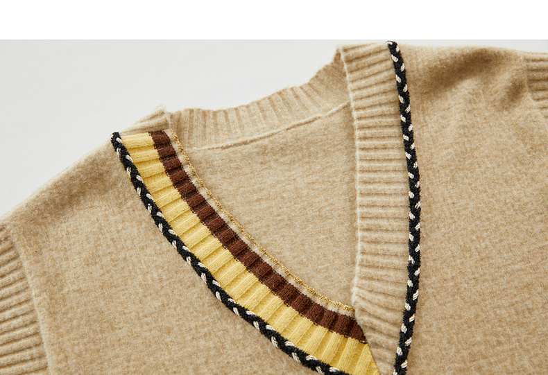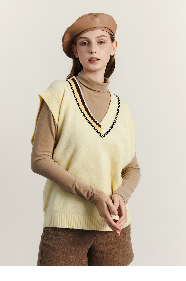 谜底V领针织马甲女2023冬季新款复古文艺宽松套头针织衫234MZ1896