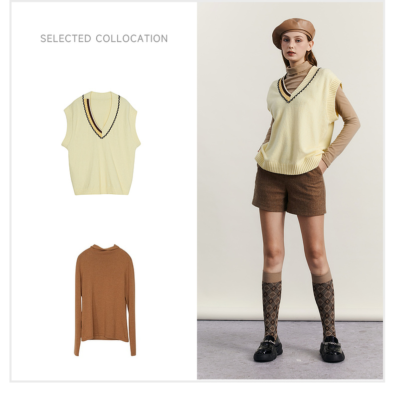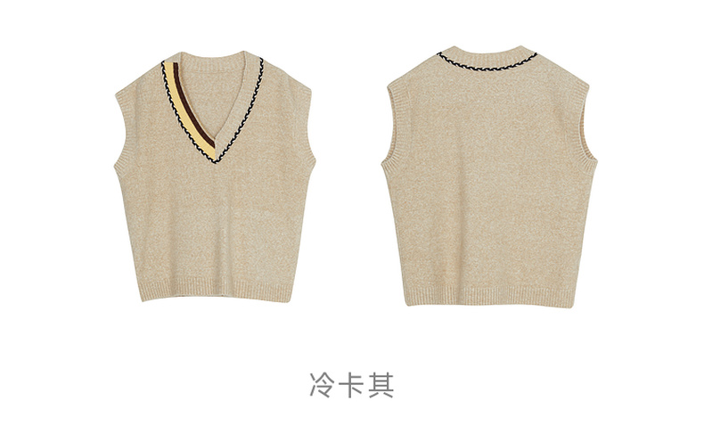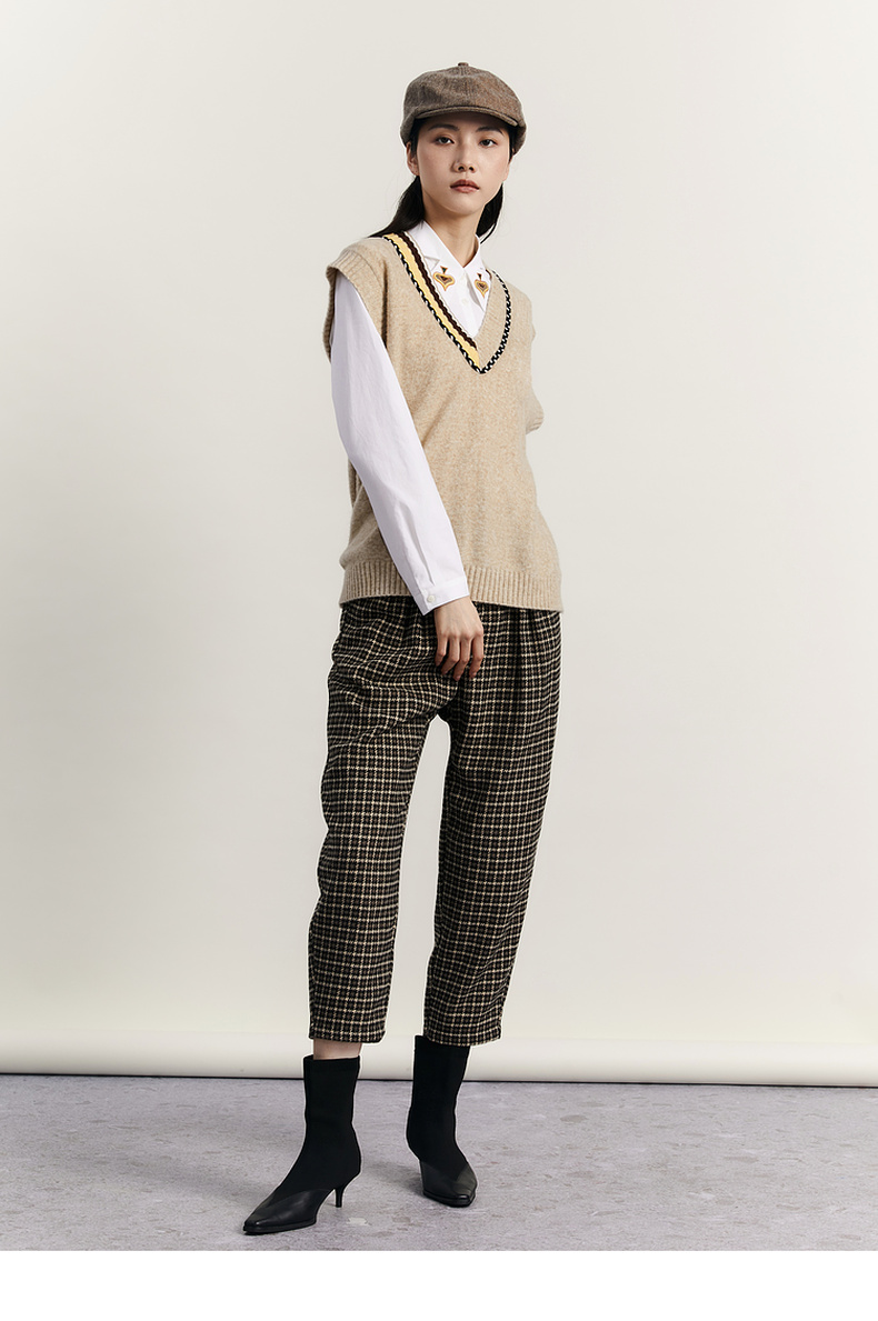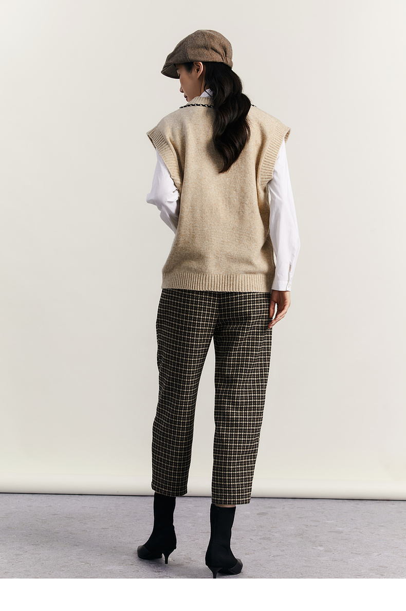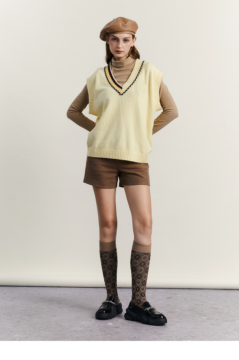 谜底V领针织马甲女2023冬季新款复古文艺宽松套头针织衫234MZ1896