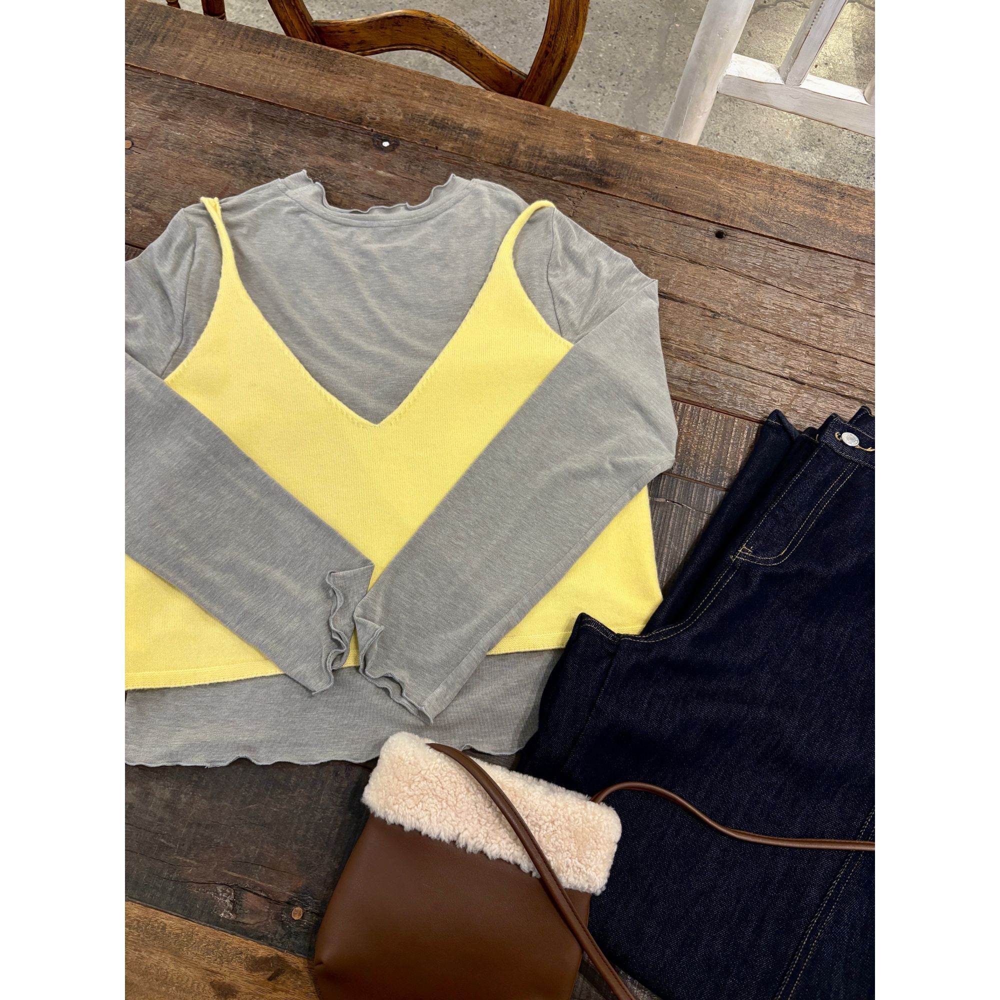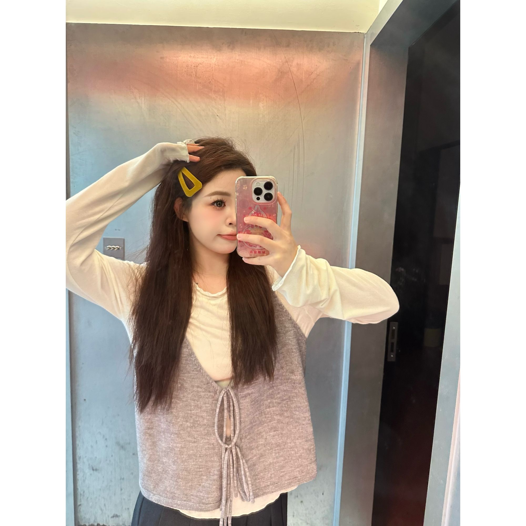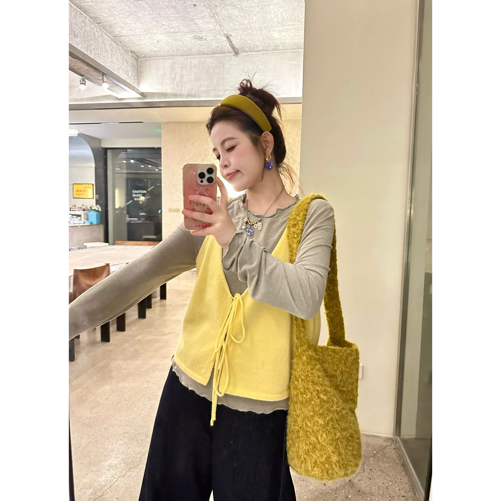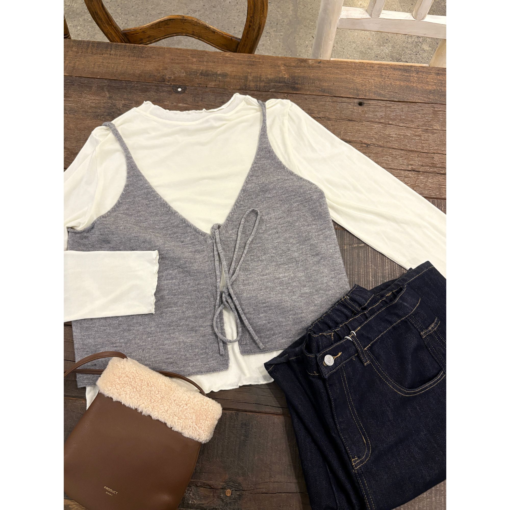 25AW上新【现货折上95折】 【复古编织】简约绑带吊带背心叠穿内搭针织打底衫上衣两件套