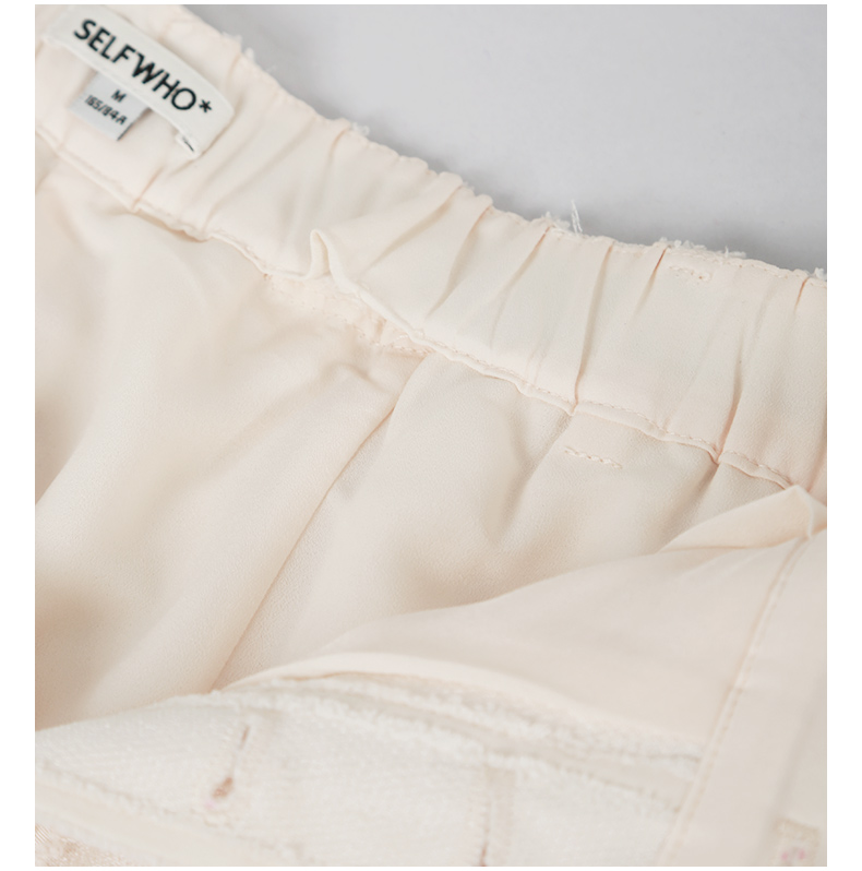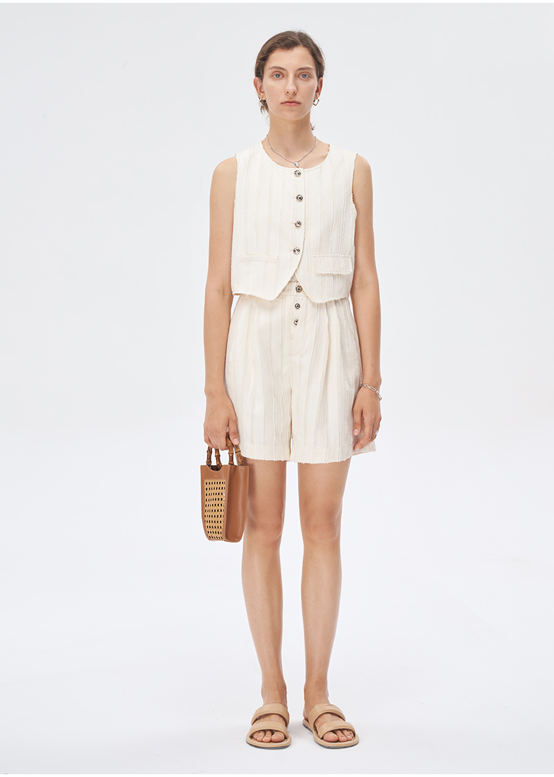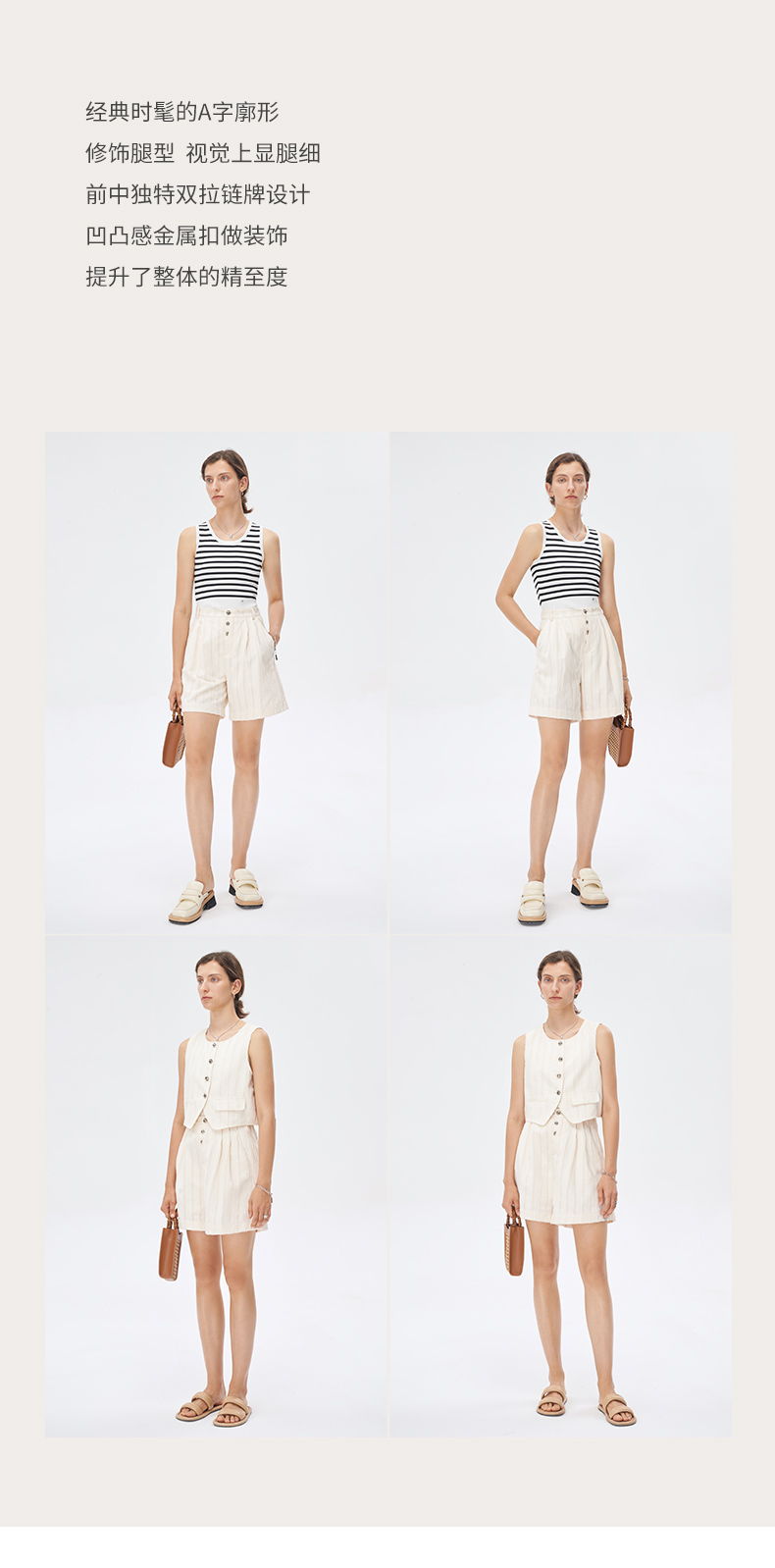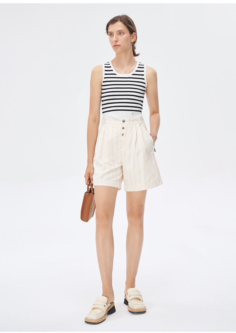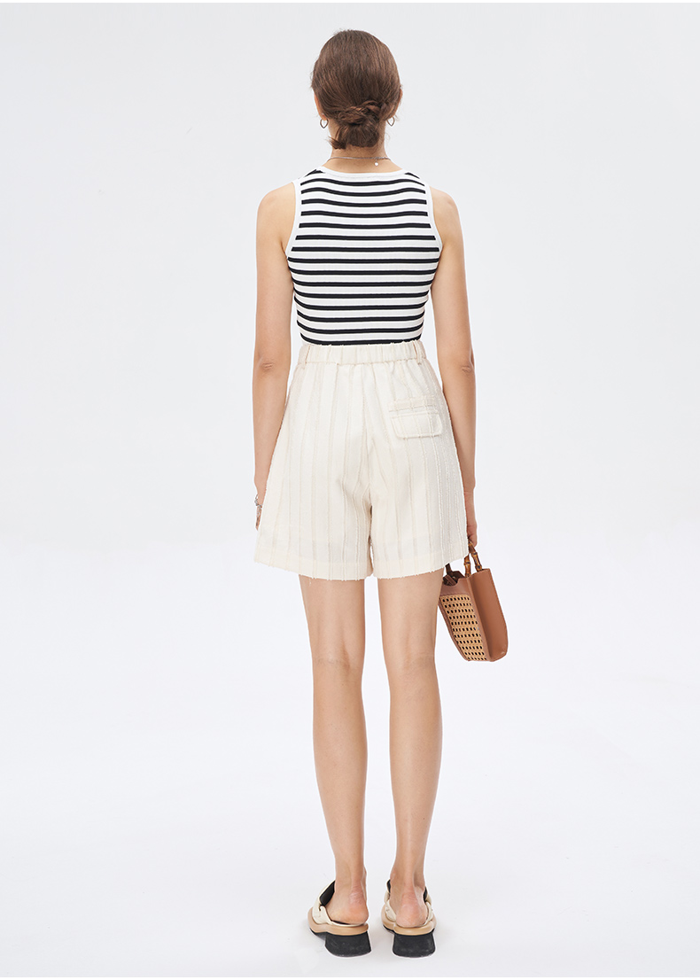 Self Who特殊工艺立体条纹短裤女2023新款夏小个子运动休闲阔腿裤