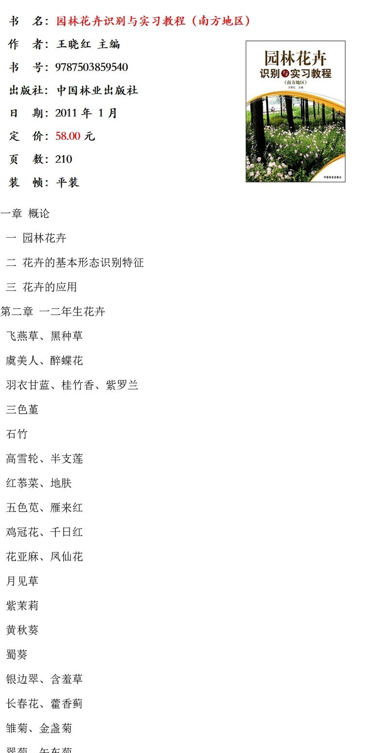 园林花卉识别与实习教程 南方地区 5954 园林花卉学观赏植物学实习教材 园林园艺景观设计城市规划农学林学环境艺术中国林业出版社
