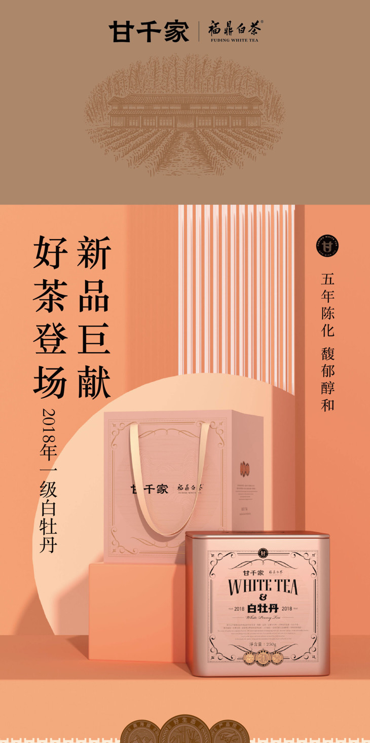 250g甘千家四方罐2018年一级牡丹