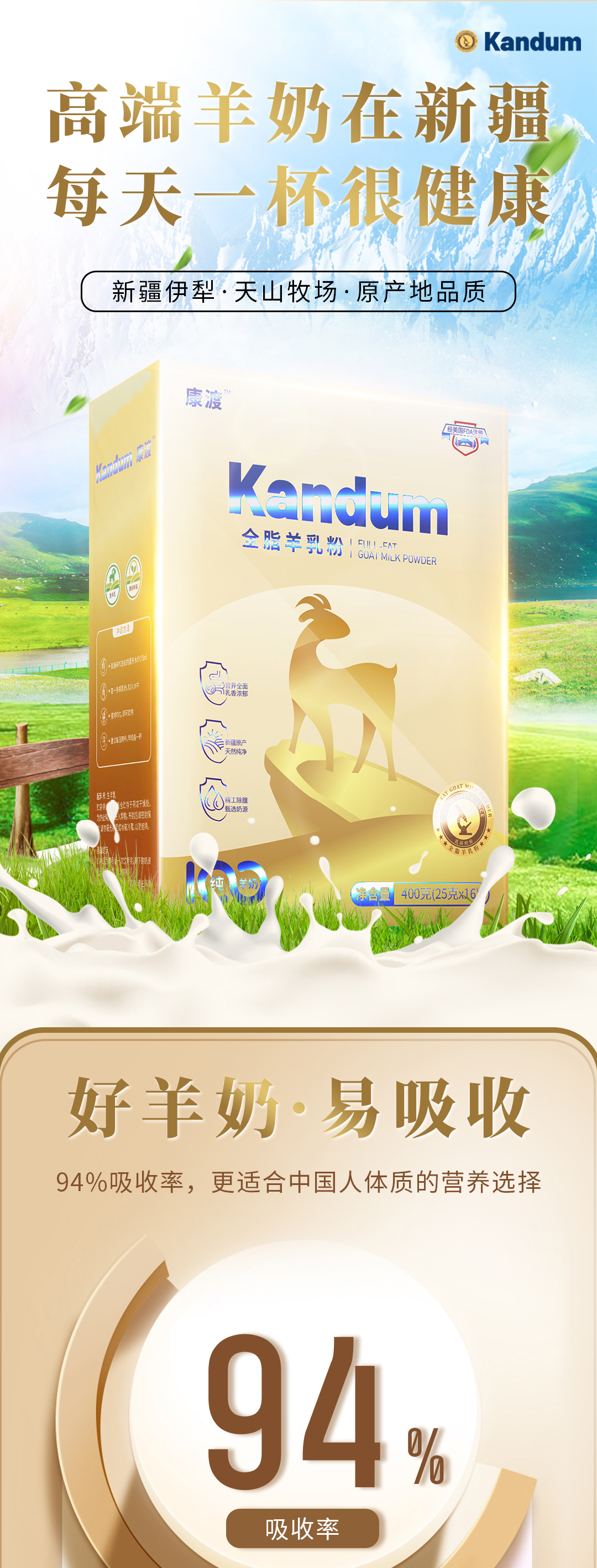 【康渡羊乳粉】新疆伊犁纯羊乳粉,400g/盒,6盒送沙琪玛6盒
