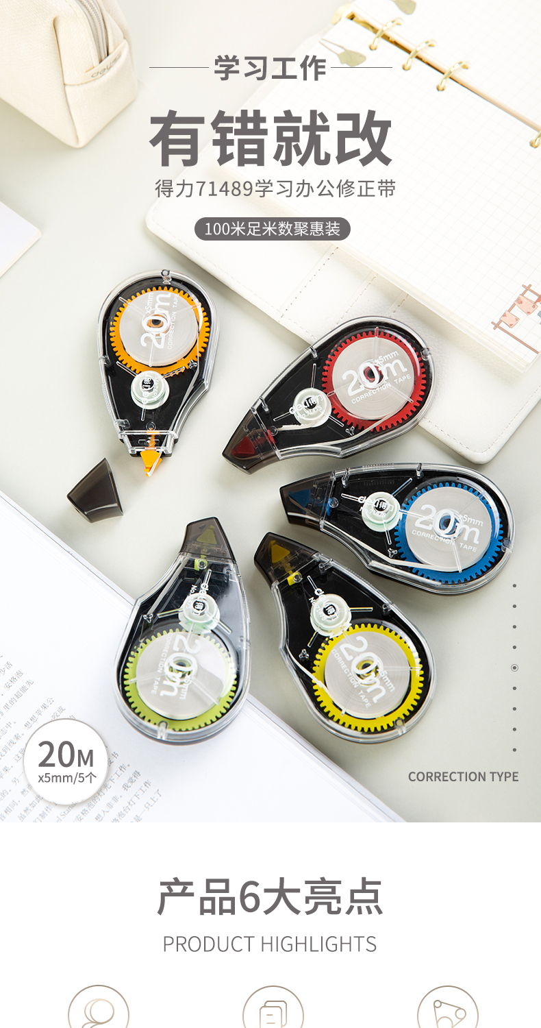 得力71489修正带套装_5mmx20m膜带(混)(卡)