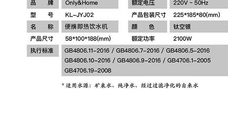 only&home 便携式即热饮水机 桌面迷你即热式饮水机 KL-JYJ06