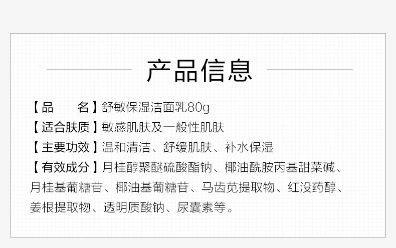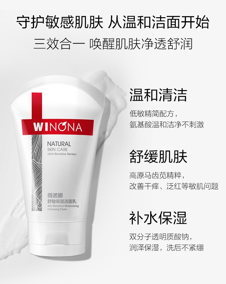 薇诺娜(WINONA) 舒敏保湿洁面乳 温和清洁保湿洗面奶 敏感肌肤 80g舒敏保湿洁面乳 心选到家