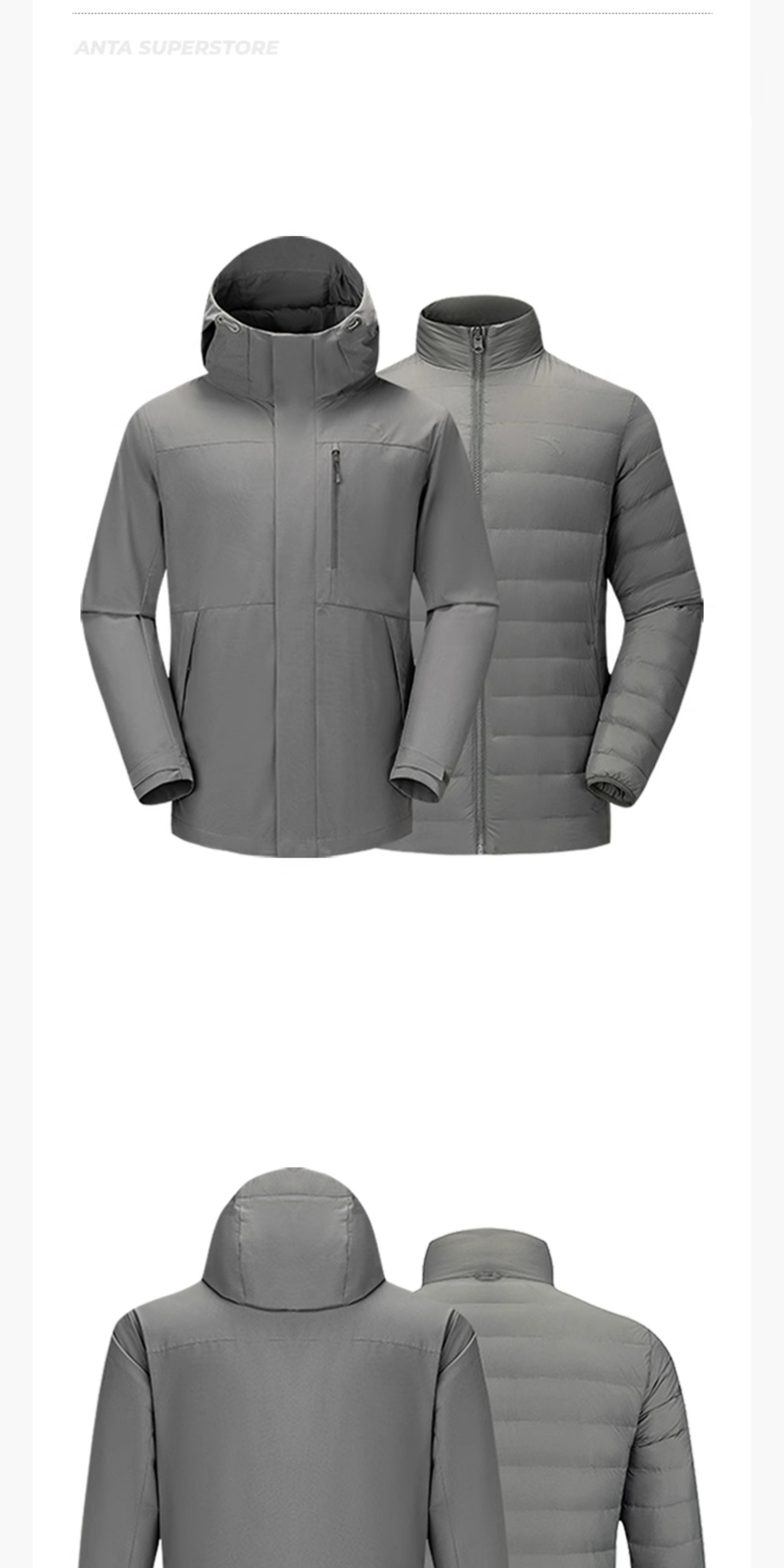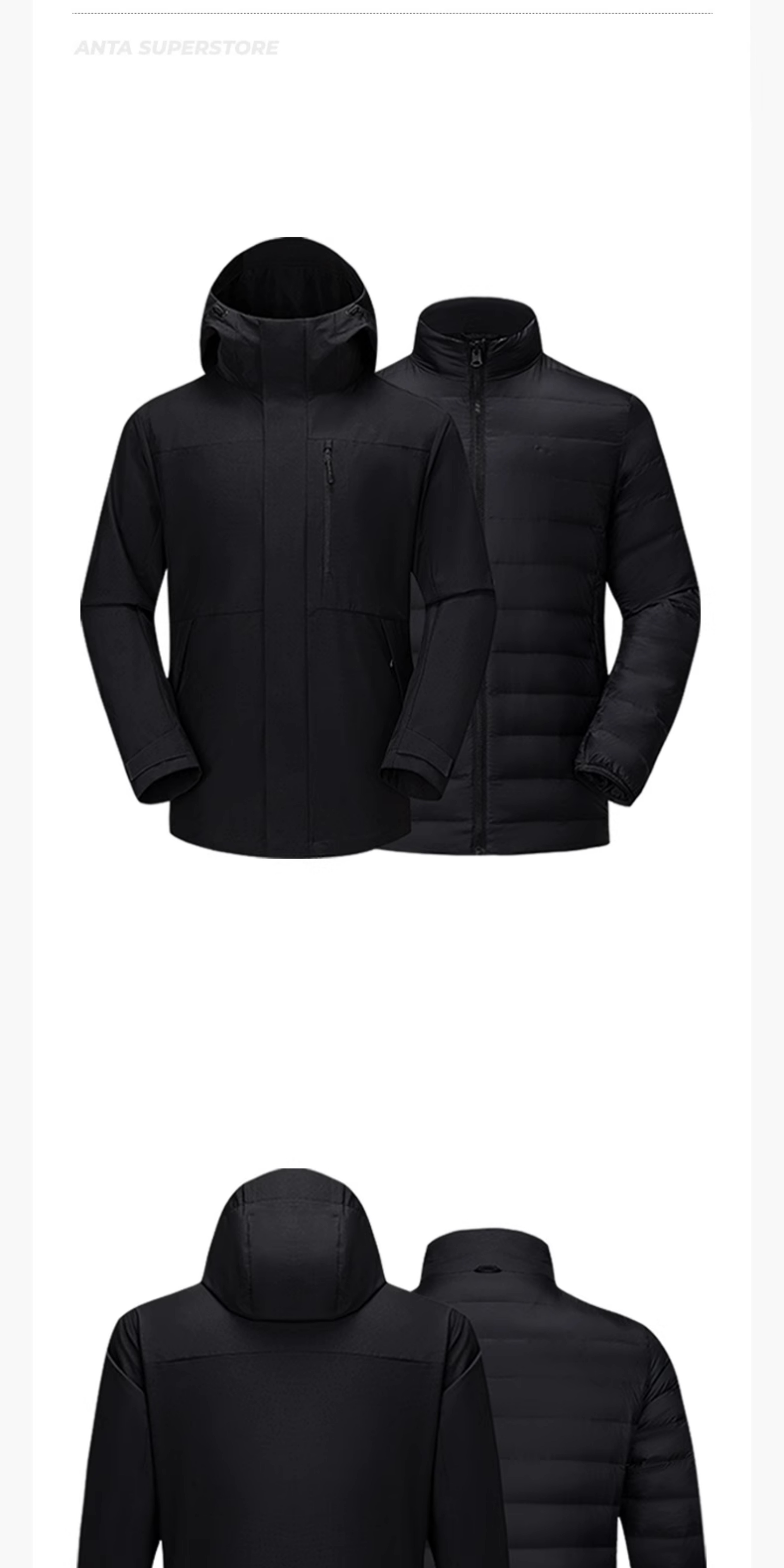 超级安踏羽绒服两件套男秋冬防水连帽外套保暖羽绒内胆152546602U