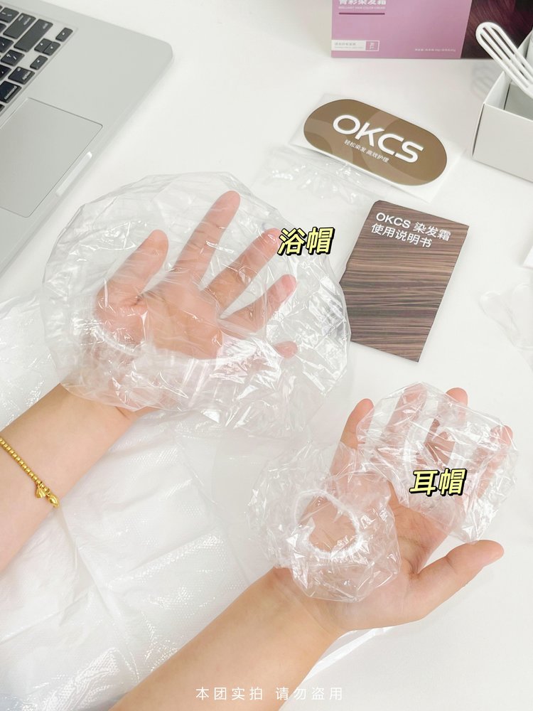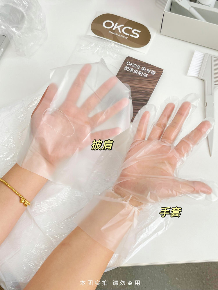 染发前一定要做:【过敏测试】再开始使用,染发步骤很简单: 戴好赠送的工具包 披肩 手套 耳罩