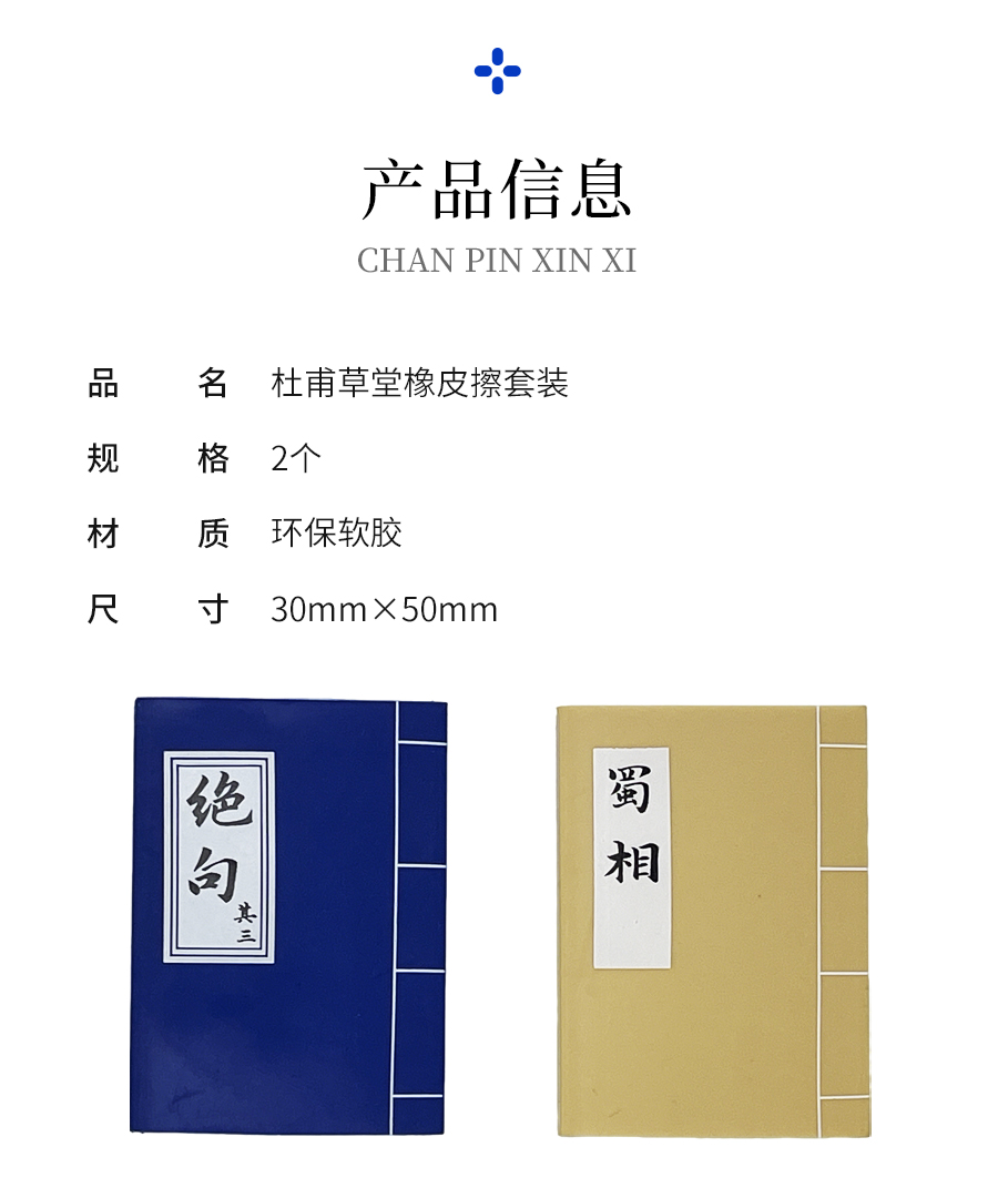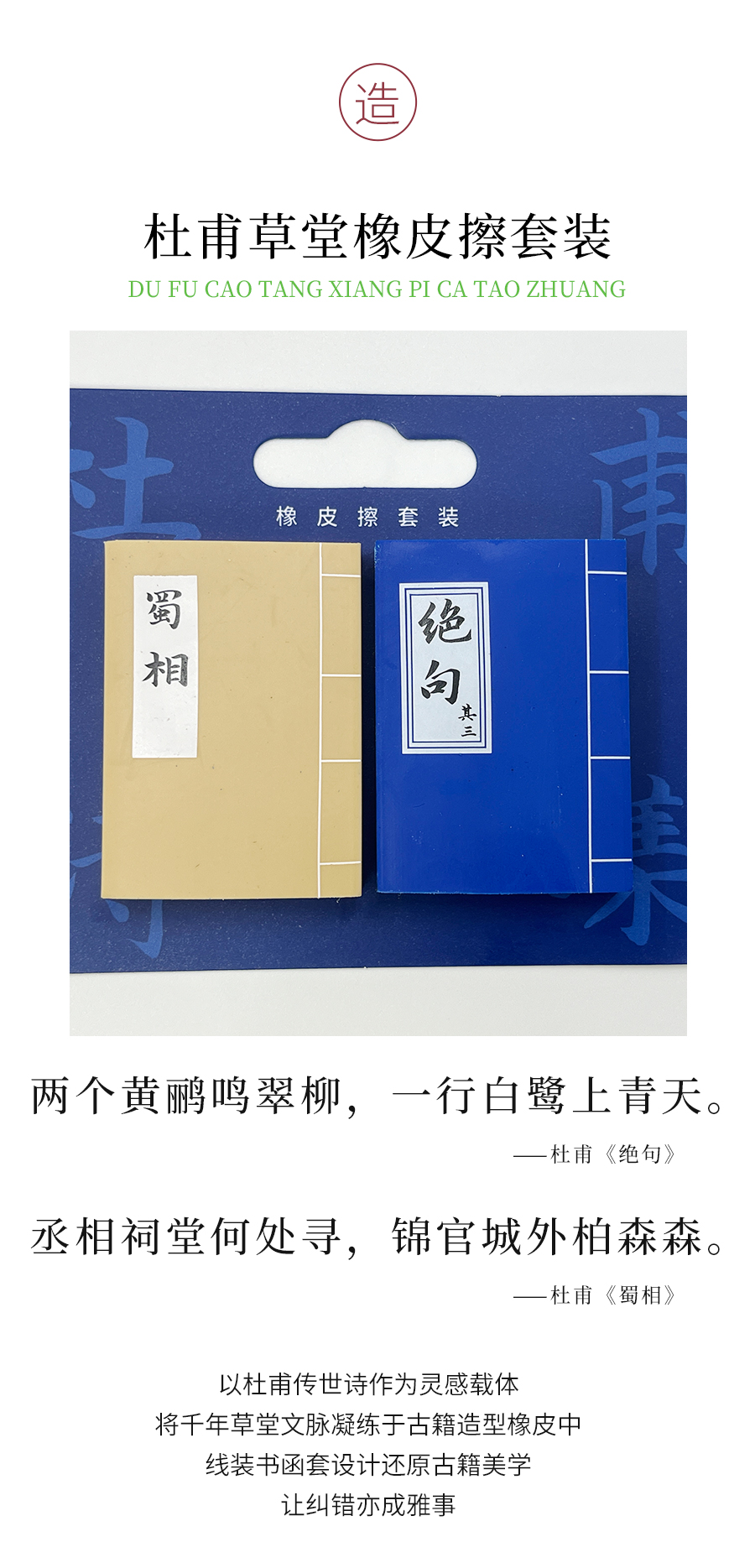 杜甫草堂【 古诗集书本橡皮擦套装 】博物馆文创实用小学生创意风奖品