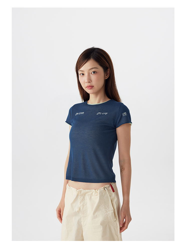 CryingCenter golove gocry刺绣双层针织透气正肩短袖tee哭喊中心