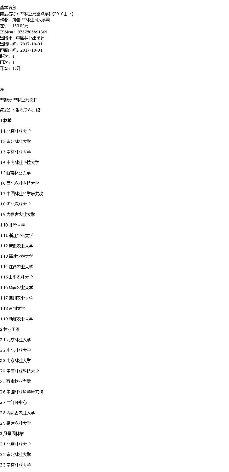 国家林业局重点学科2016 上下册 9130 中国林业出版社