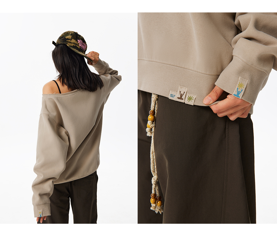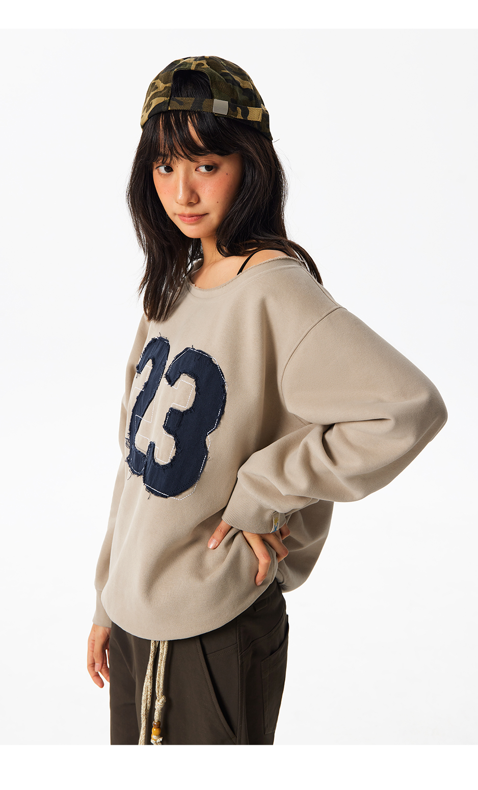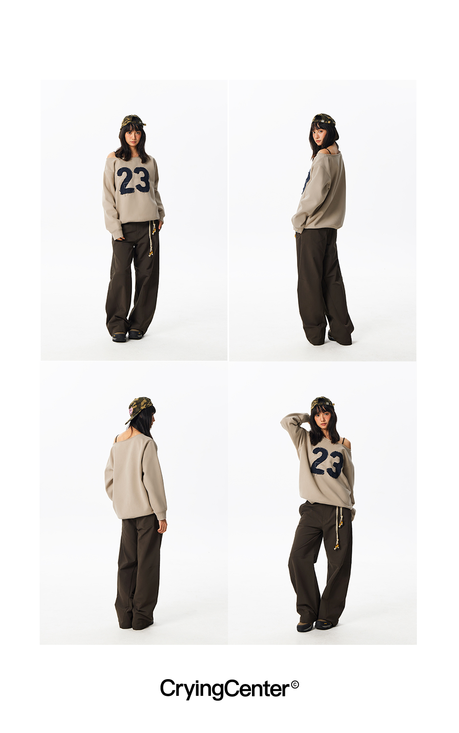 CryingCenter 斜肩加绒做旧宽松号码卫衣 哭喊中心