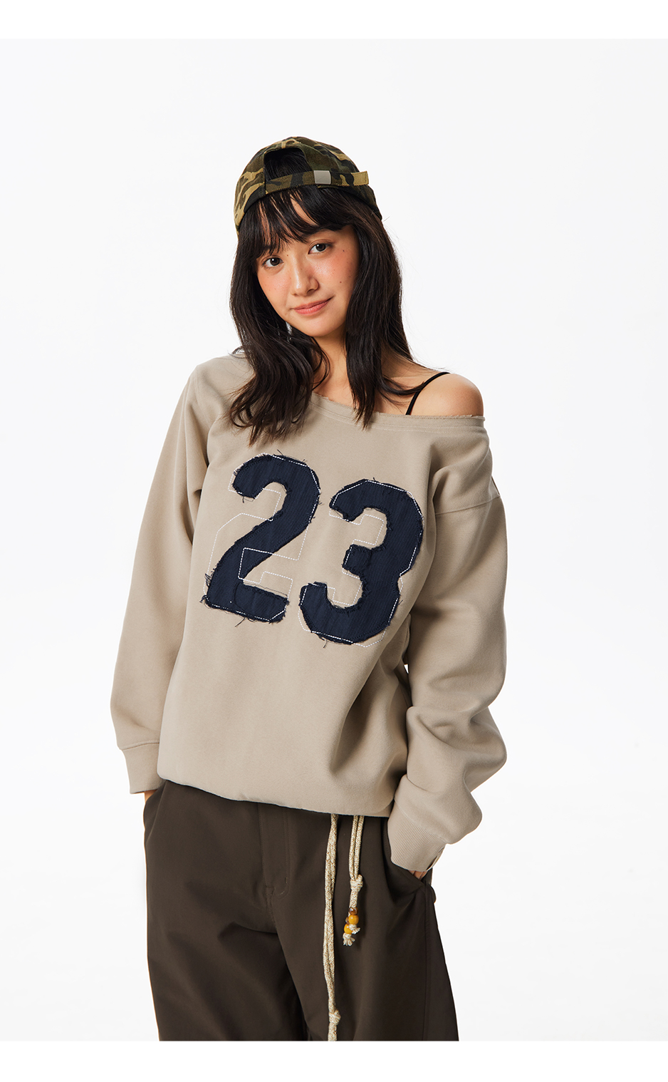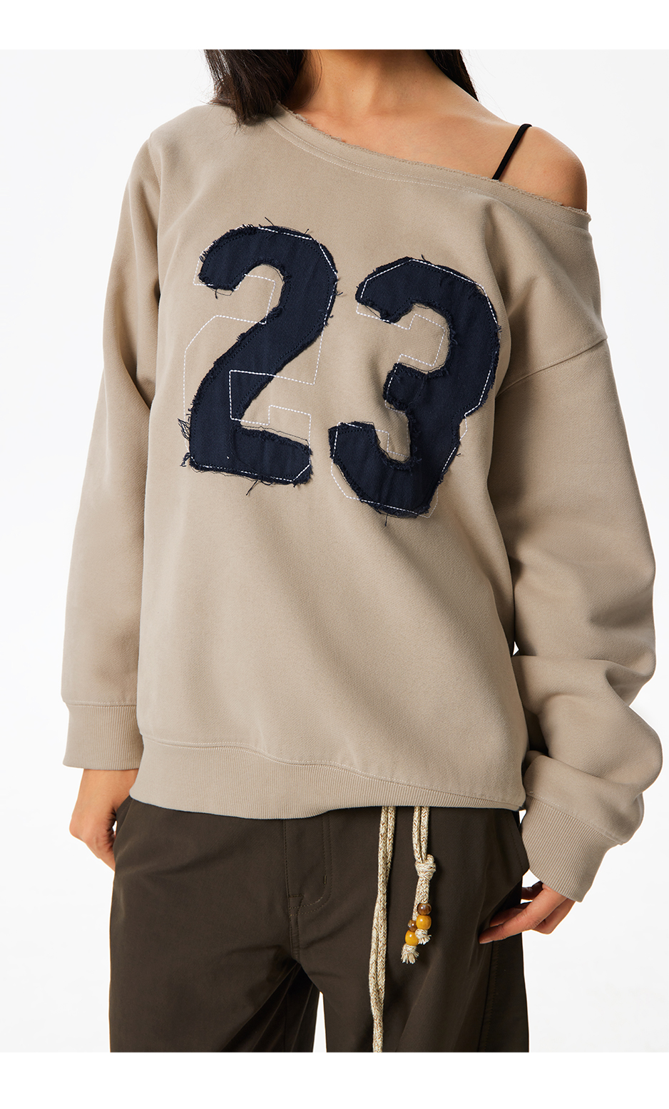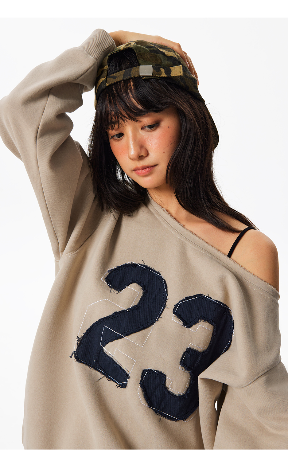 CryingCenter 斜肩加绒做旧宽松号码卫衣 哭喊中心