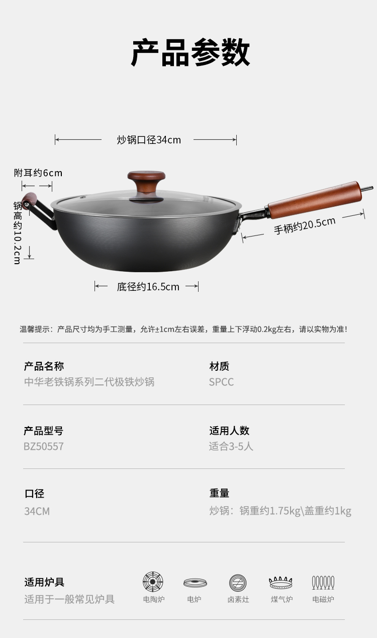 炊大皇 极铁系列第二代精铁炒锅34cm BZ50557