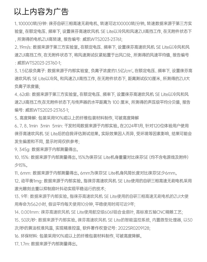 积分免费兑:徕芬Laifen SE Lite 家用入门款高速吹风机 莱芬大风力速干低噪音学生宿舍便携风筒 女生礼物 SE lite亮白色