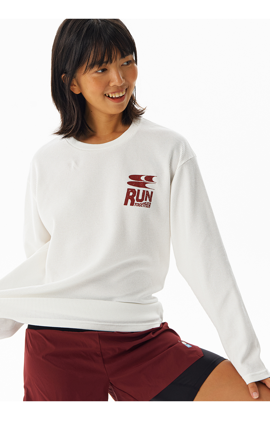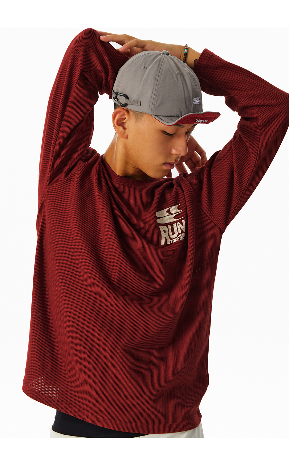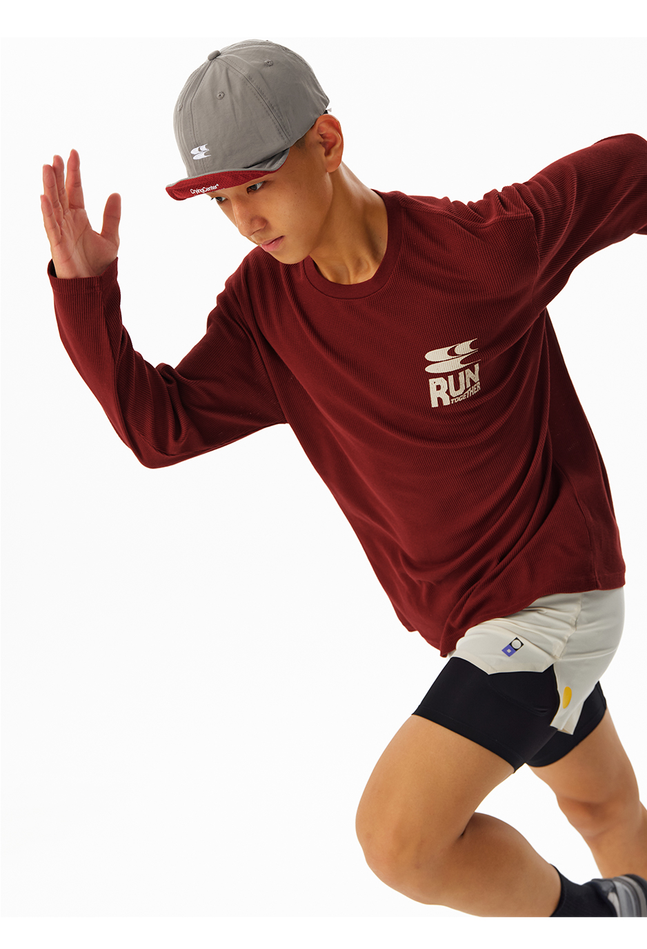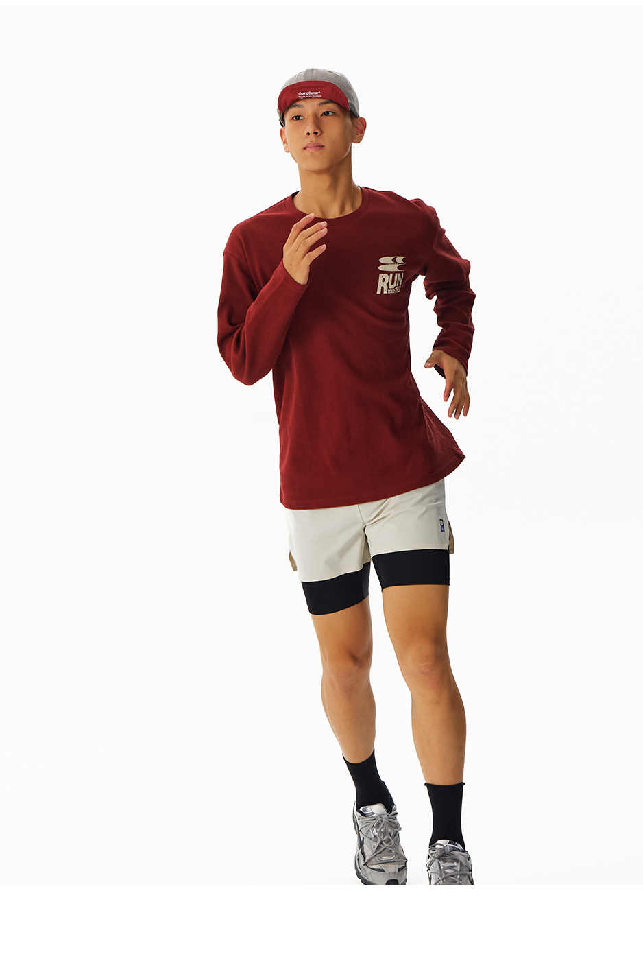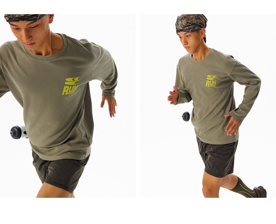 CryingCenter速干透气轻盈手感华夫格马拉松跑步运动训练宽松长袖
