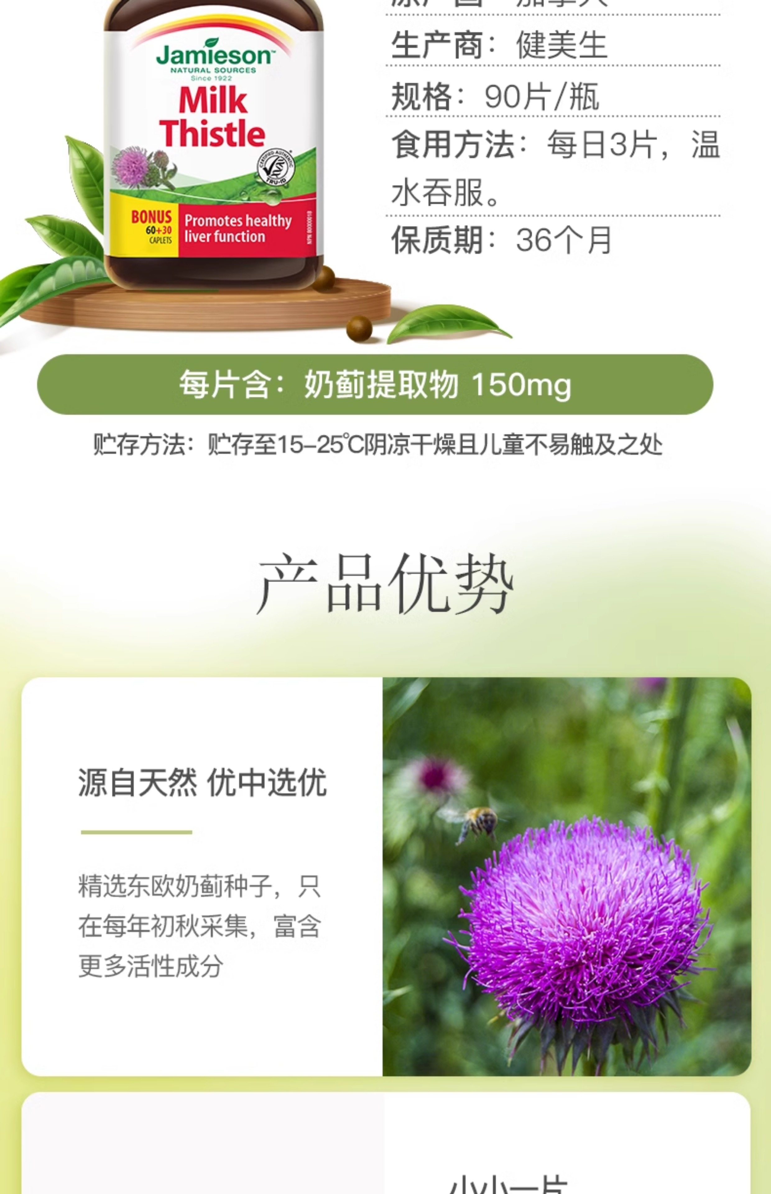 【保税仓】JAMIESON健美生奶蓟浓缩片90片