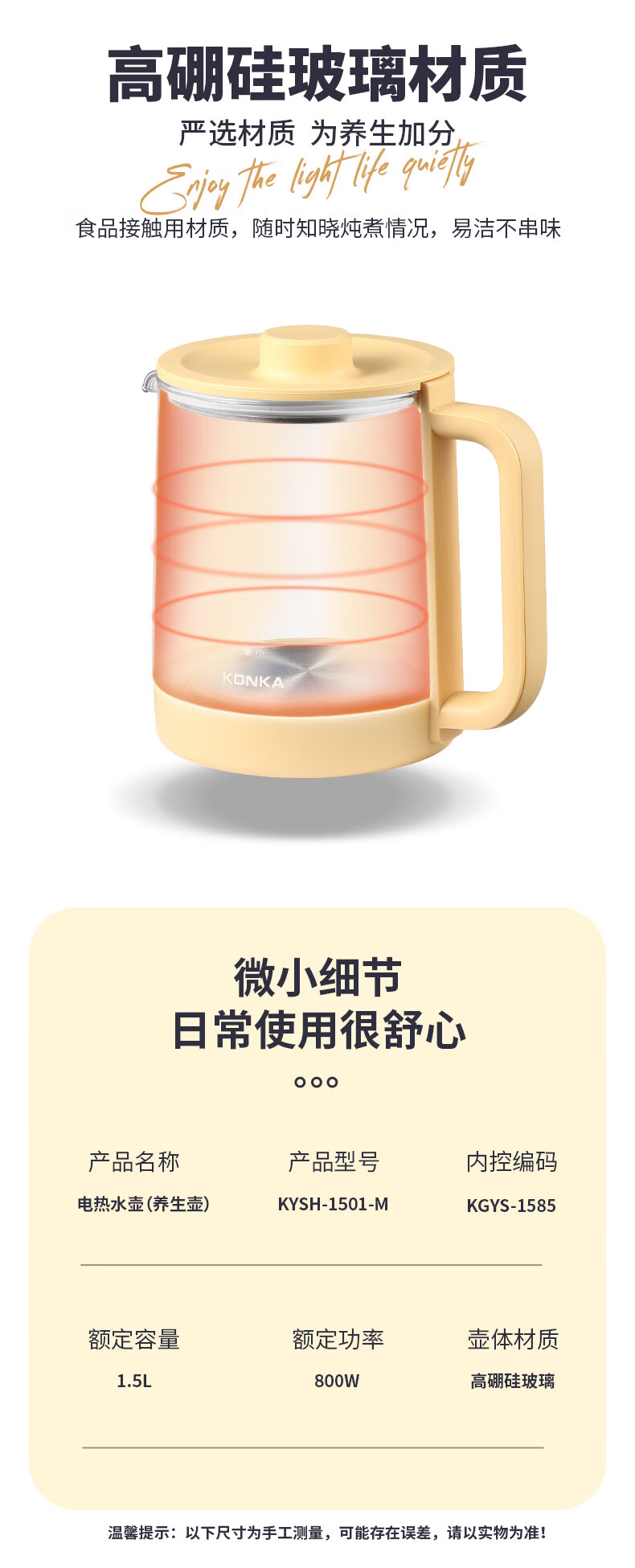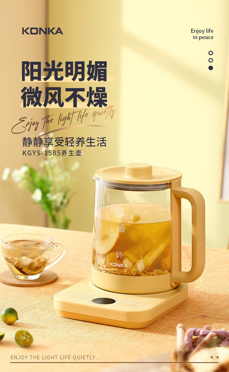 康佳(KONKA)养生壶1.5L家用多功能花茶煮茶壶电热水壶 KYSH-1501-M养生壶 1.5L