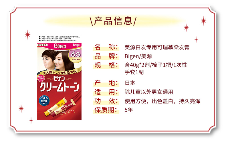 Bigen美源 可瑞慕植物染发剂男女士染发膏 40g*2