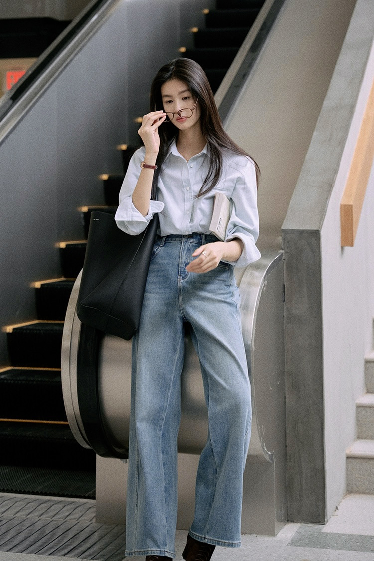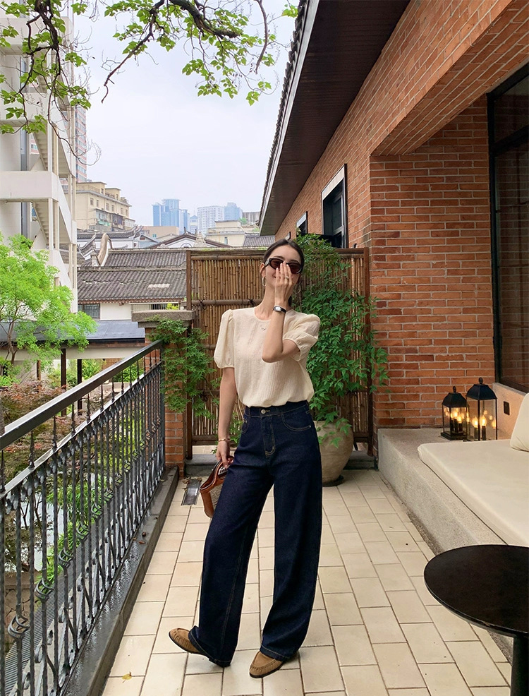 【产品名称】:isabelle marran高腰显瘦窄版直筒阔腿牛仔裤68211