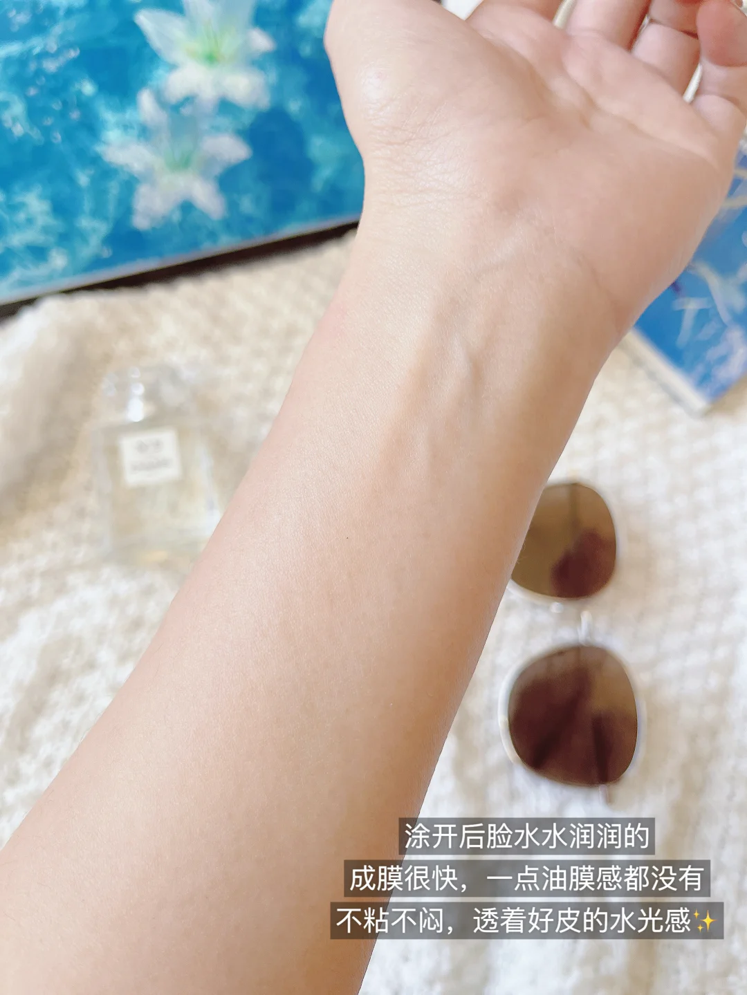 成膜后是水光感,不泛白也不闷肤