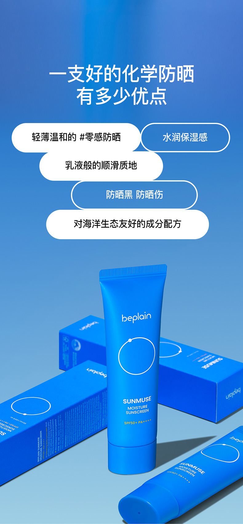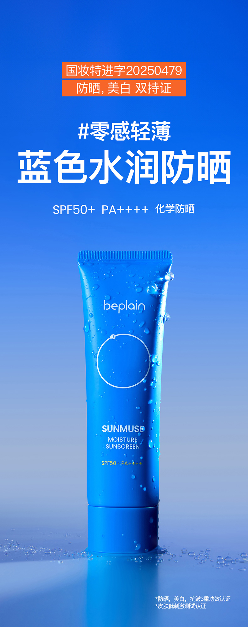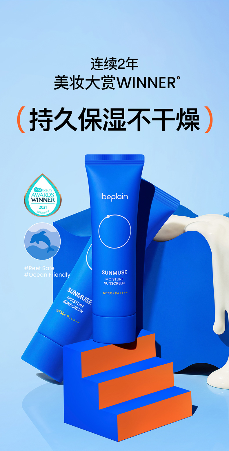 💦 beplain蓝色水润防晒(化学防晒美白认证)