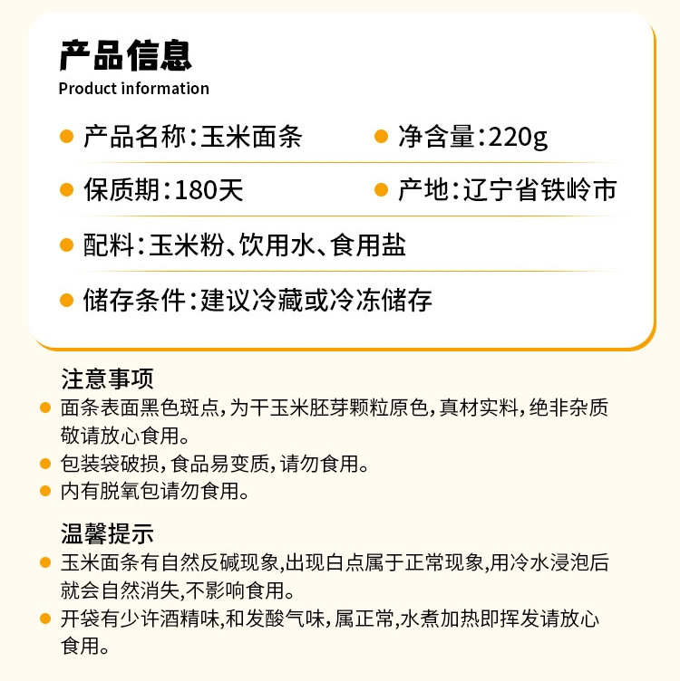 嘉喜稻玉米面条独立包装面条入口爽有嚼劲220g*10 商品图3