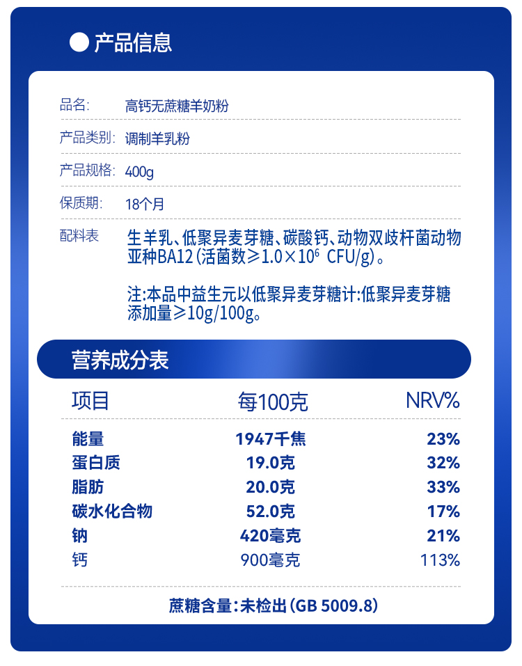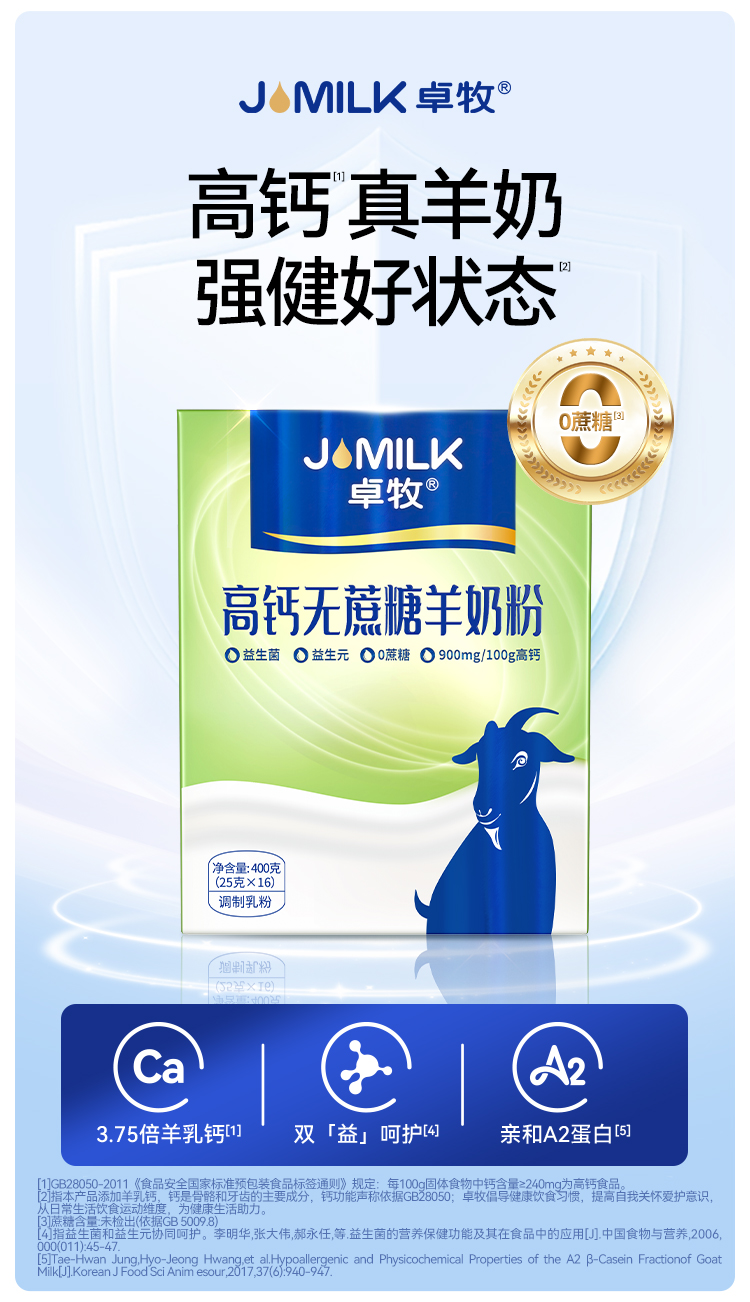 【不含蔗糖 控糖搭档】卓牧高钙无蔗糖羊奶粉 400g/盒(可奶卡提货)