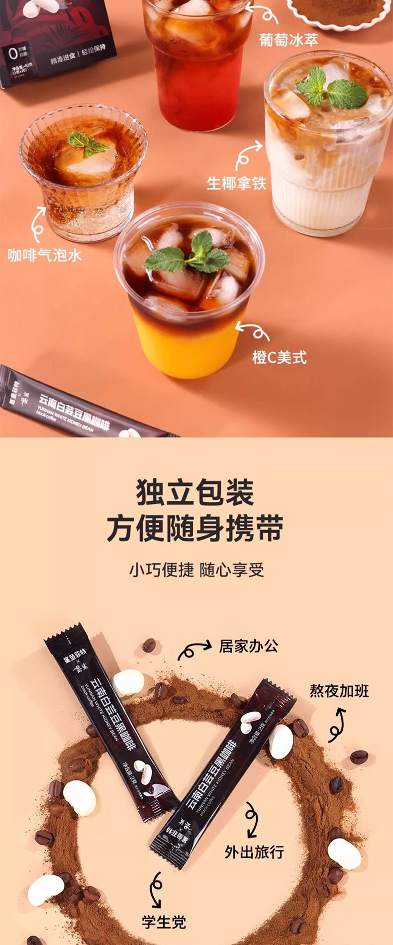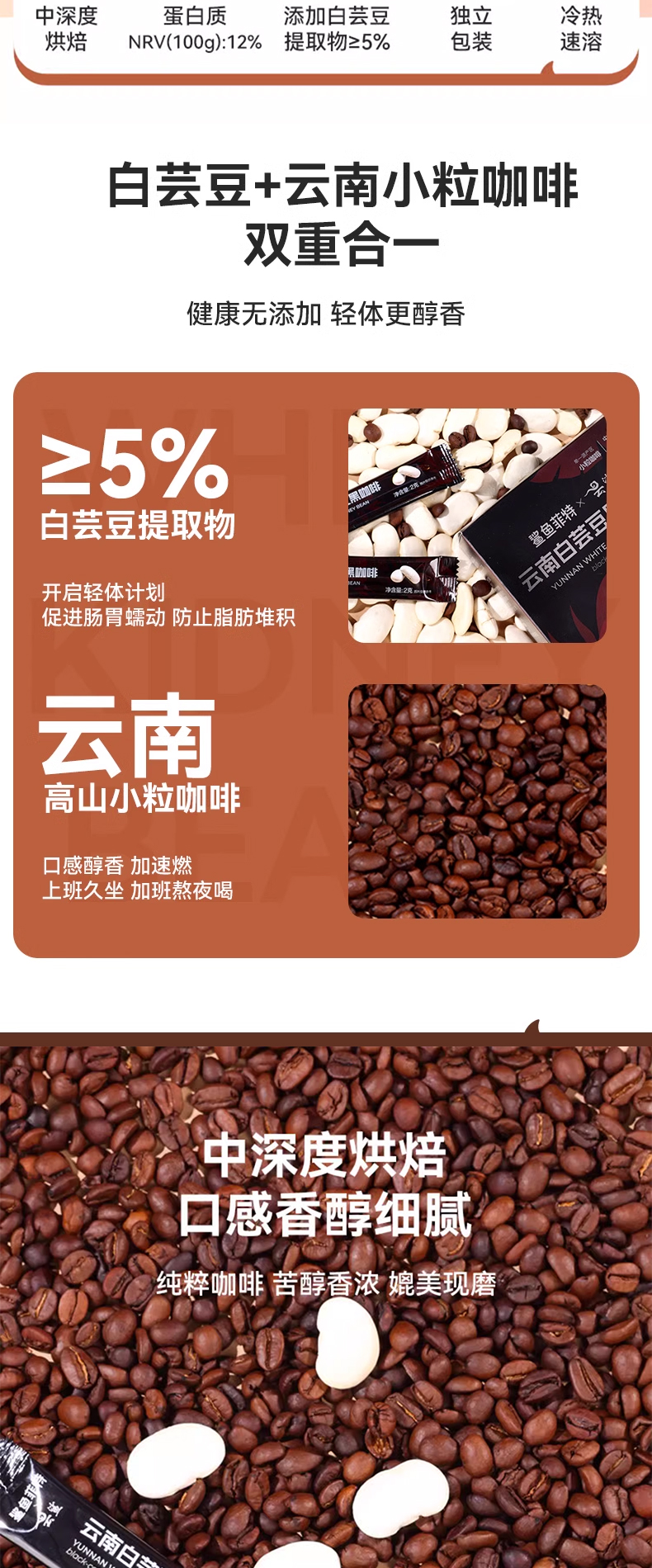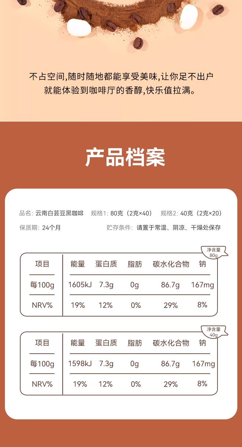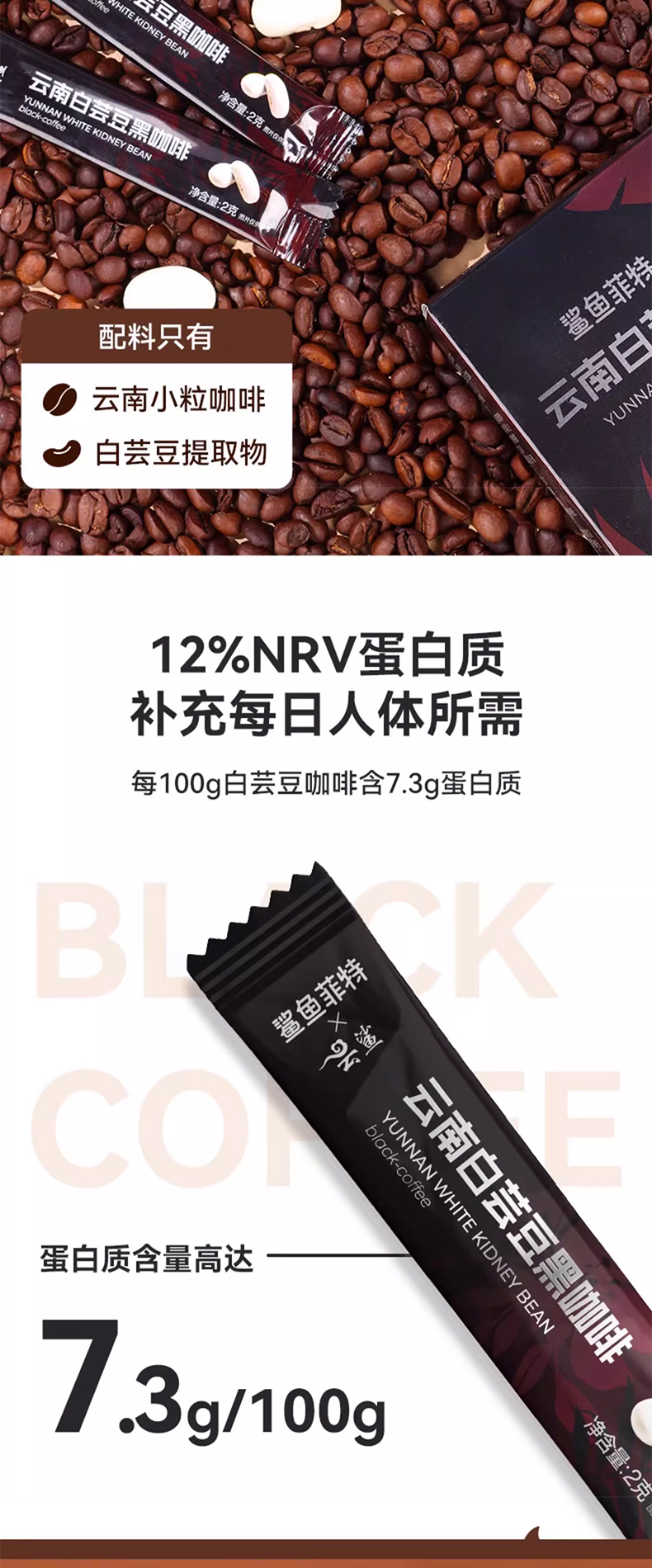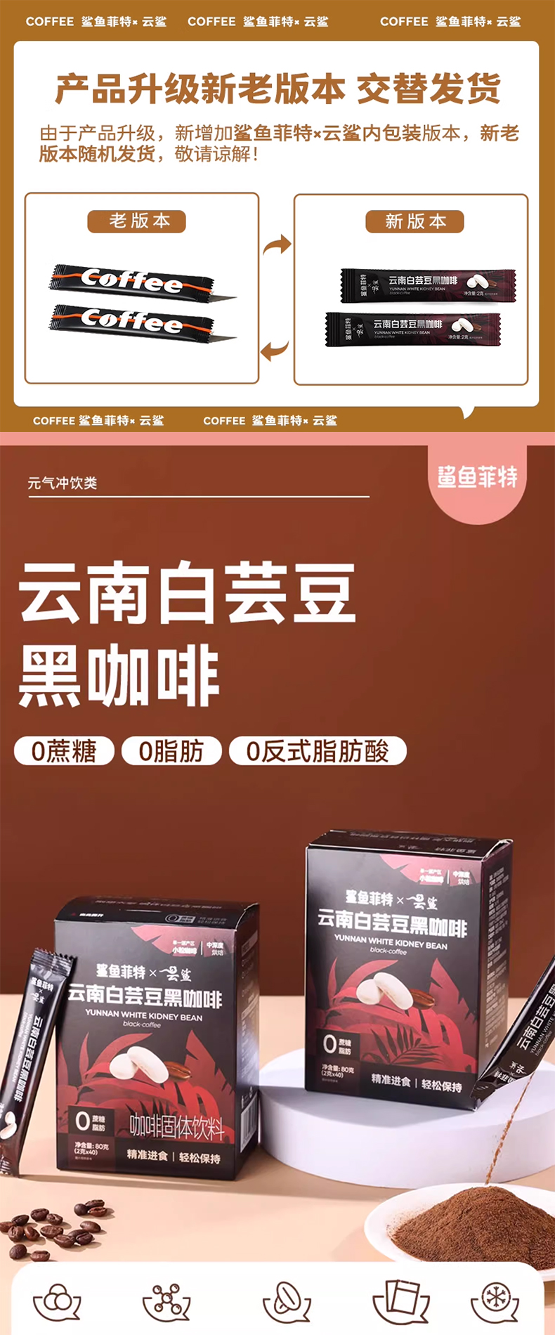 鲨鱼菲特白芸豆黑咖啡2g*20条/盒*2盒