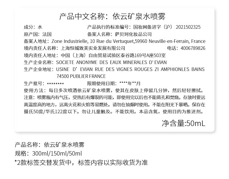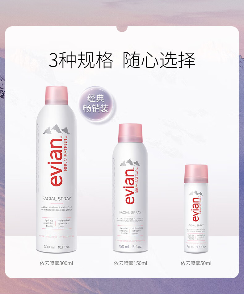 Evian依云 矿泉水补水喷雾 150ml/50ml/瓶