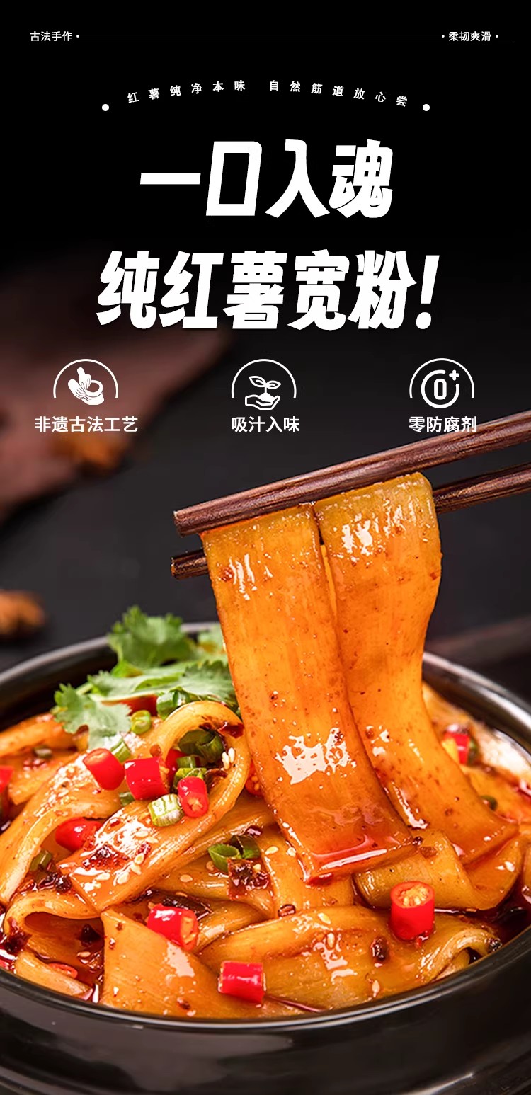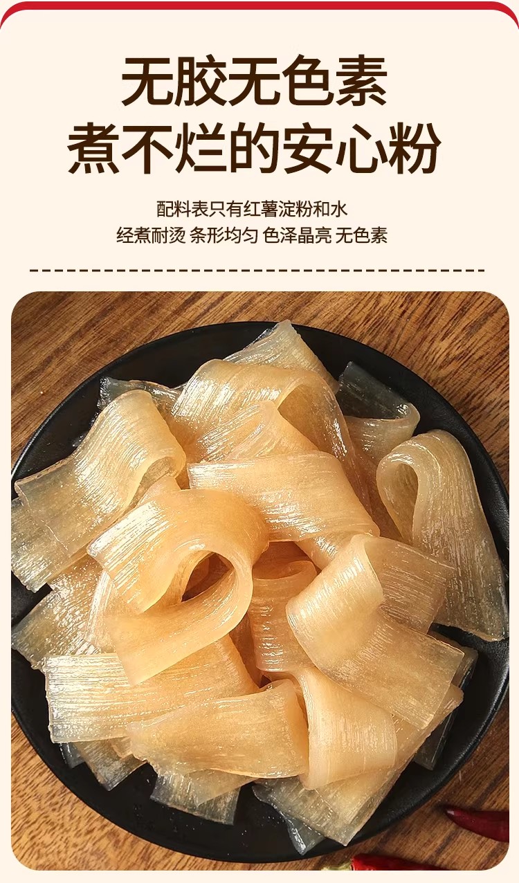 纯手工红薯宽粉500g 0胶 0矾 0添加 入口爽滑又劲道