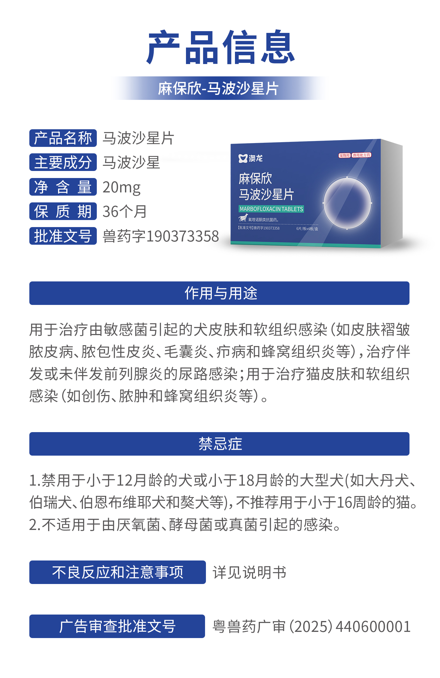 【澳龙】易安欣马波沙星片宠物皮肤感染脓皮症毛囊炎创伤脓肿猫狗通用