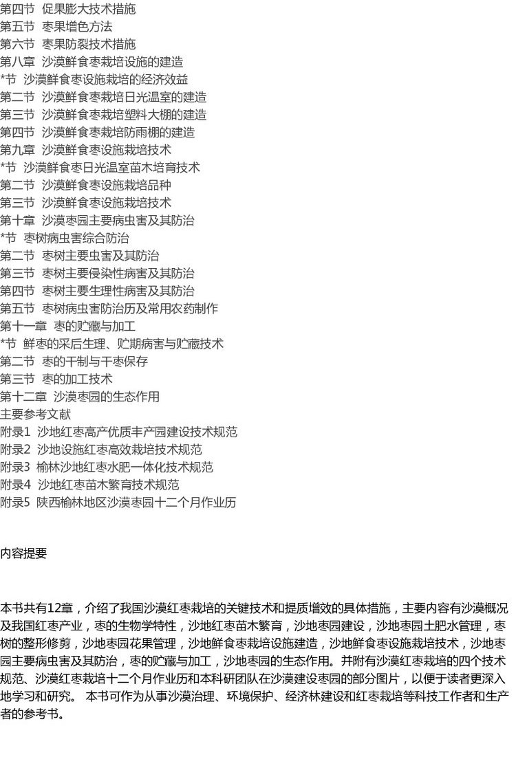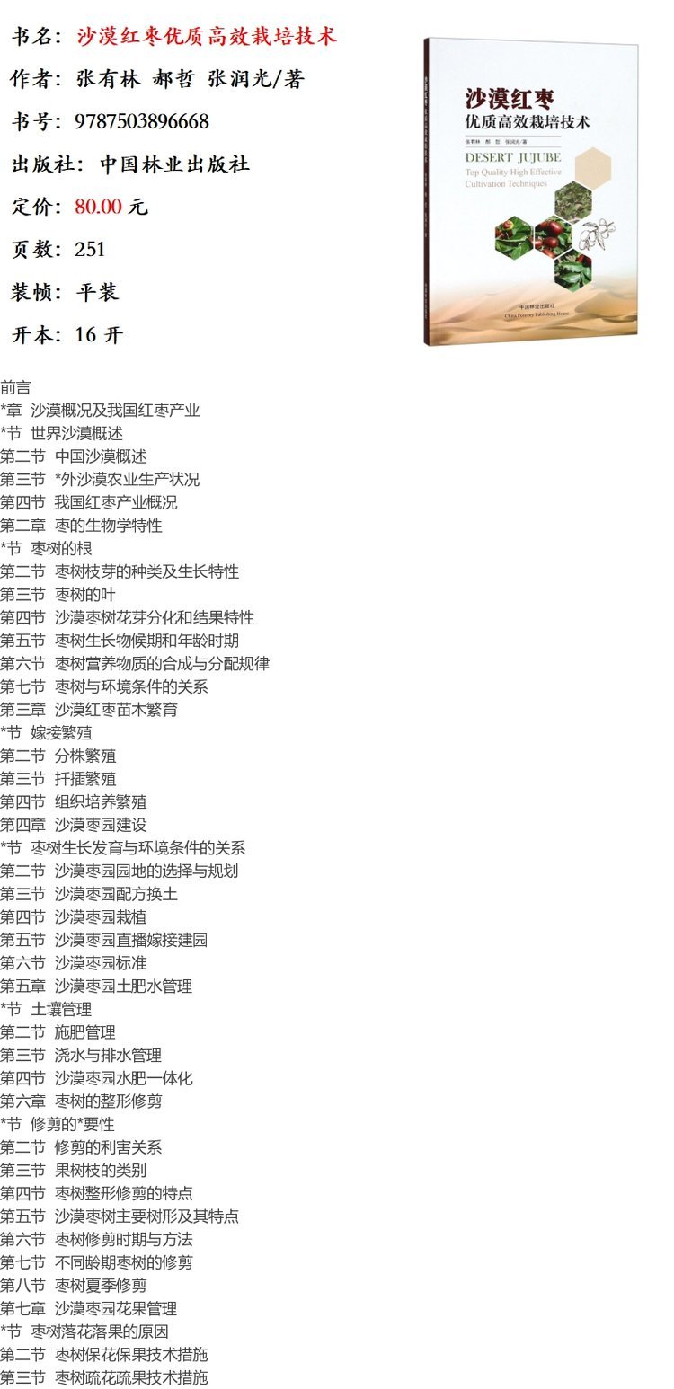 沙漠红枣优质高效栽培技术 9666沙漠治理 环境保护 经济林建设 红枣栽培 整形修剪 设施建造病虫害防治枣的贮藏加工中国林业出版社