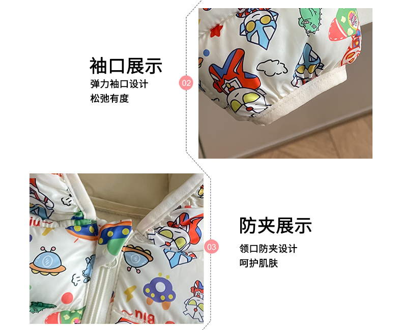 高品质拉链,丝滑不卡顿,哪怕是很小的孩子,也可以轻松穿脱。