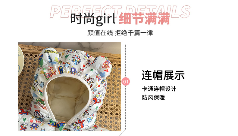 小耳朵设计,可爱来袭,萌力翻倍。立体的卡通造型让萌宝们越发可爱!