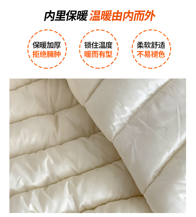 像云朵一样,蓬松柔软。轻盈蓬松,蓄热保暖的小秘密,我有一颗柔软的“芯”。