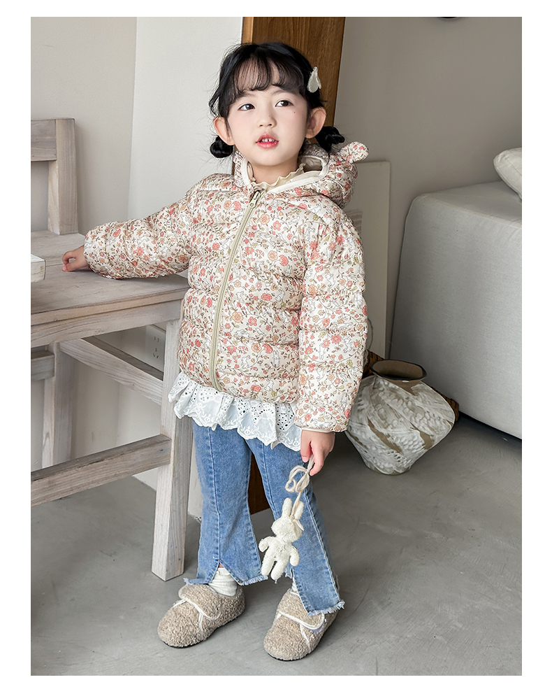 怎么打扮都好看米色碎花甜美可爱又保暖可选哦搭配加绒内搭+加绒牛仔裤~