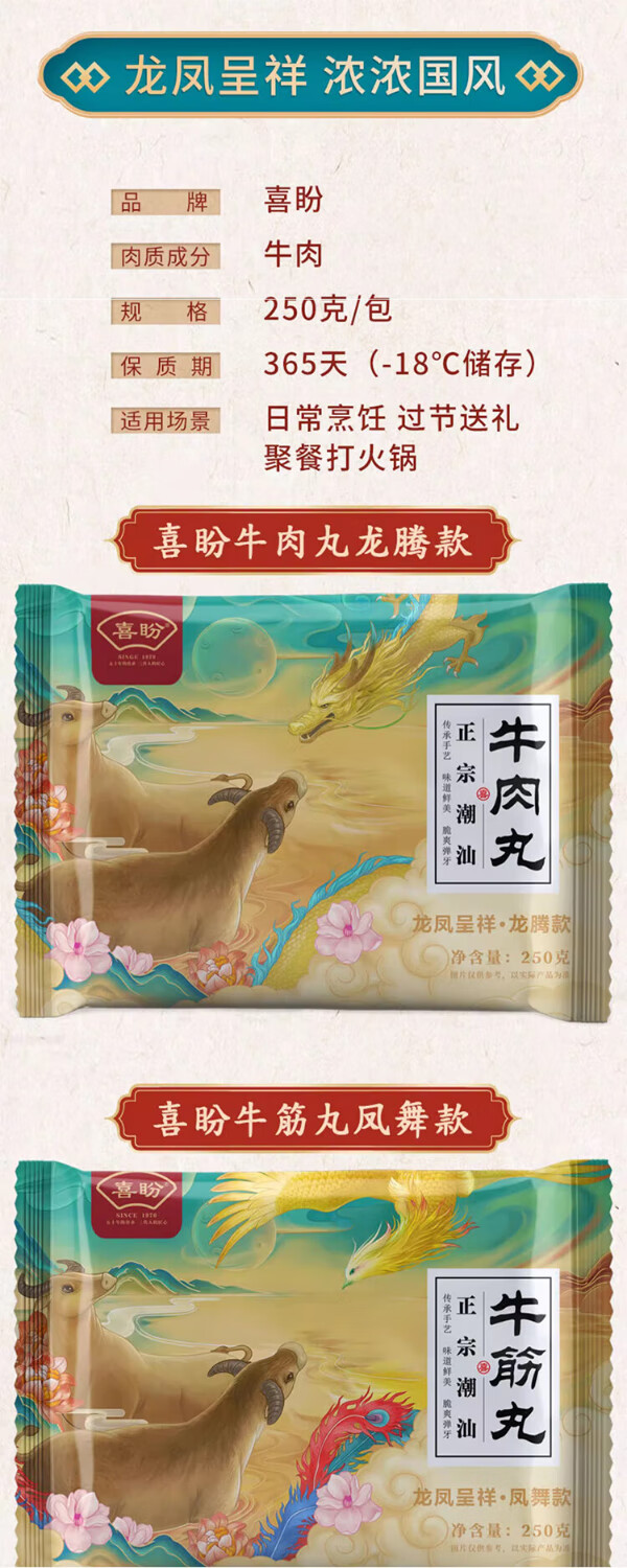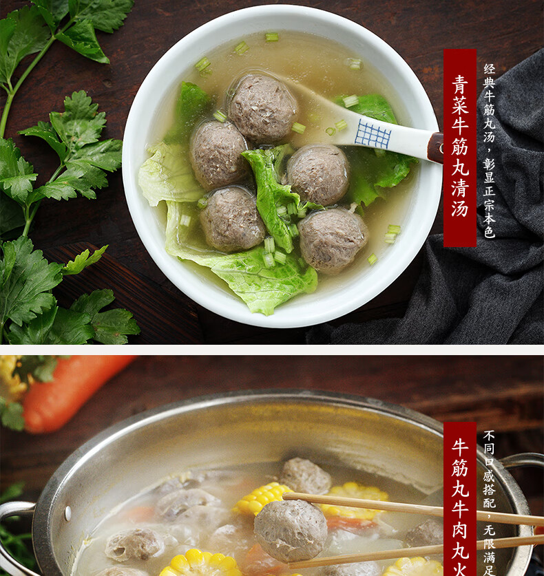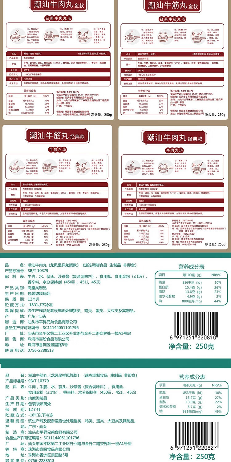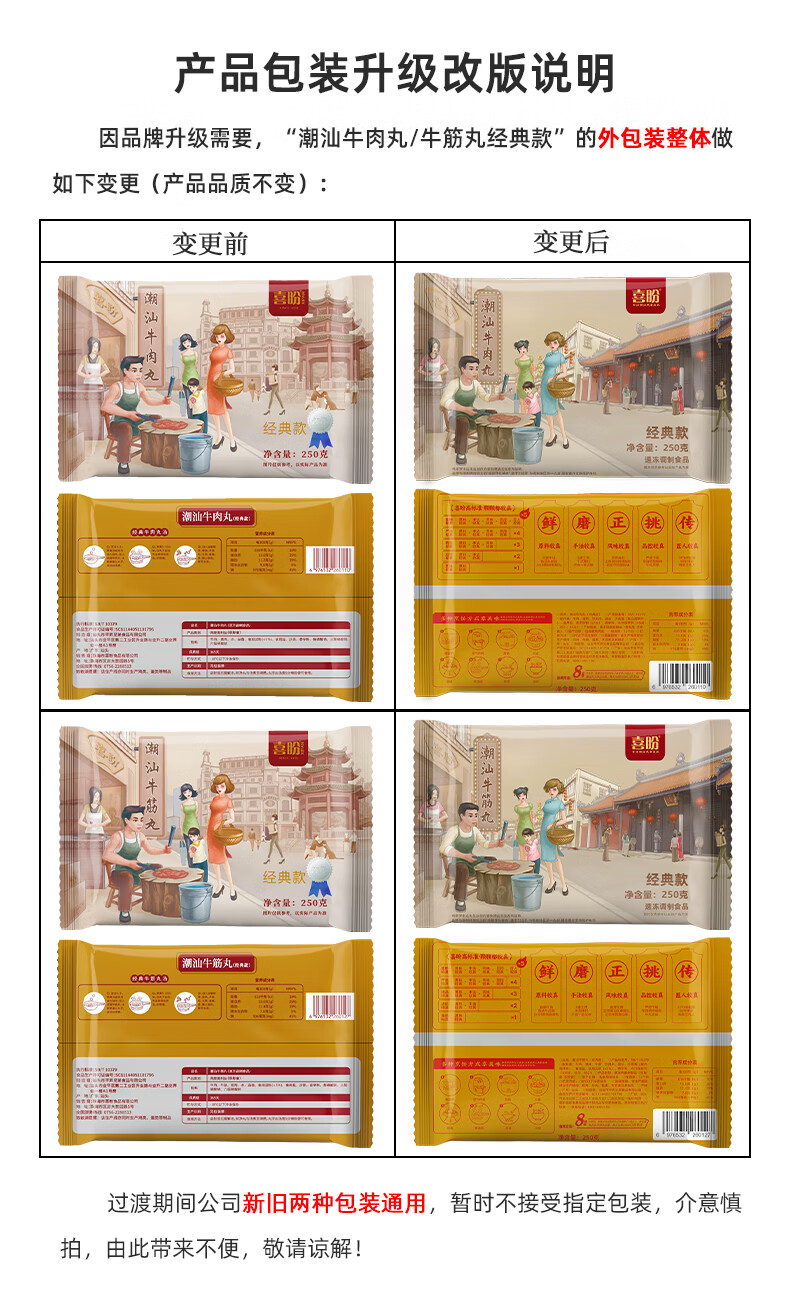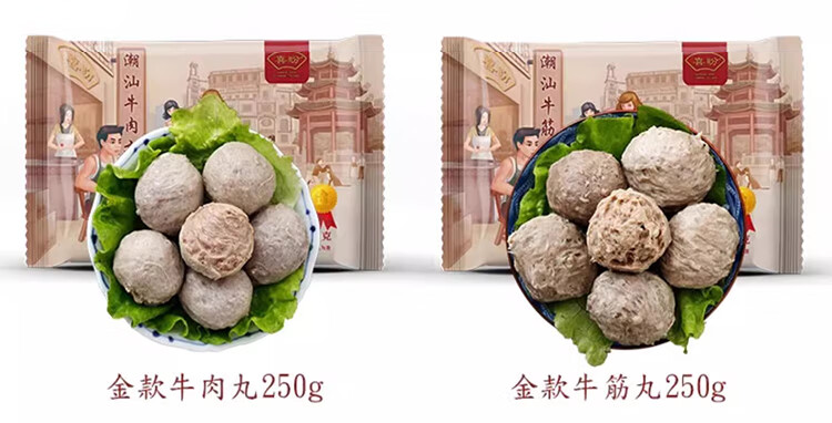 喜盼牛肉丸潮汕正宗手打汕头牛筋丸特产烧烤火锅食材空气炸锅牛肉丸子 金款(纯牛肉) 牛肉丸250g*2包牛筋丸250g*2包