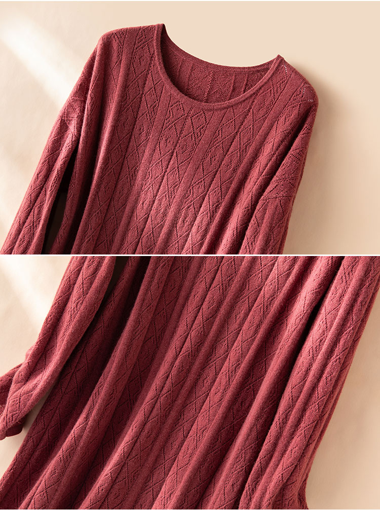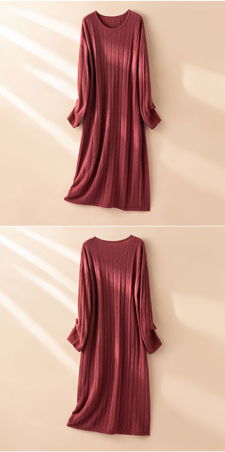 红豆慕斯~100纯山羊绒衫女圆领慵懒松弛感女针织连衣裙CYR250431