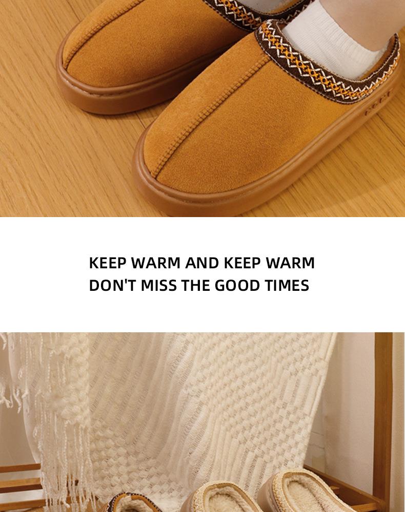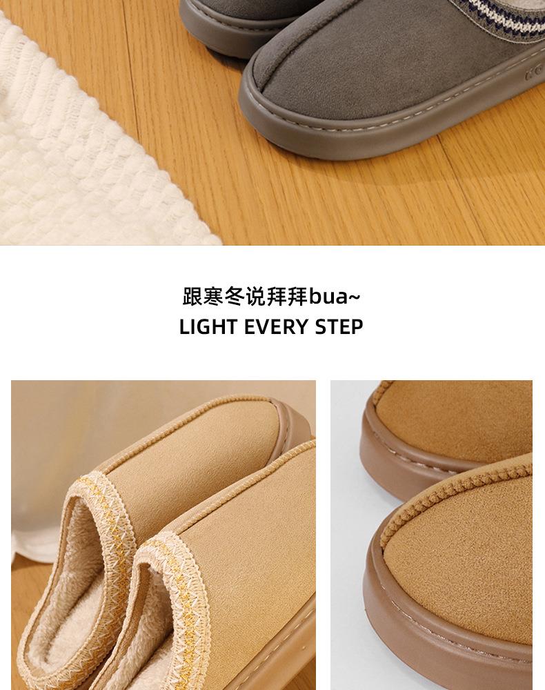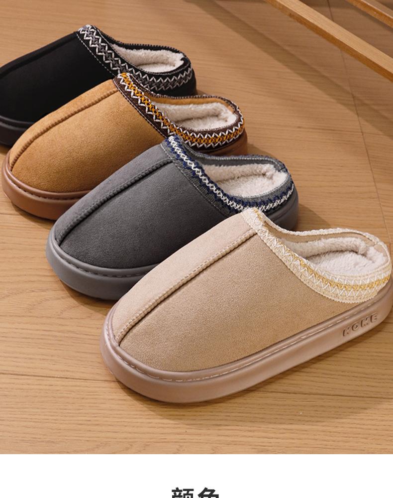 拍一发二!【仿麂皮民族风棉拖】2025秋冬季女士时尚舒适茸茸毛鞋领厚底圆头休闲懒人棉拖鞋