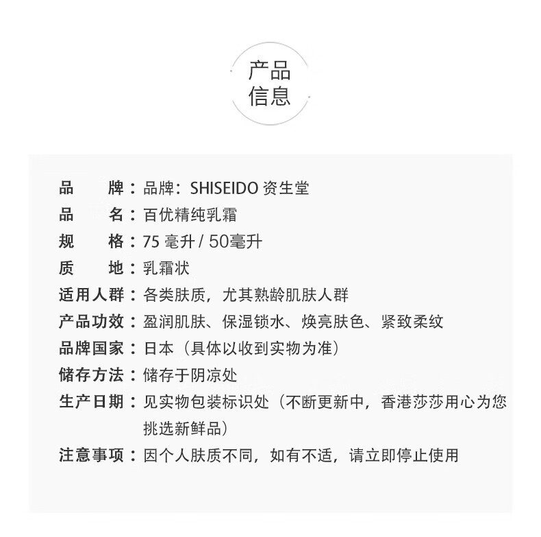 【保税仓】资生堂百优全新精纯乳霜面霜75ml