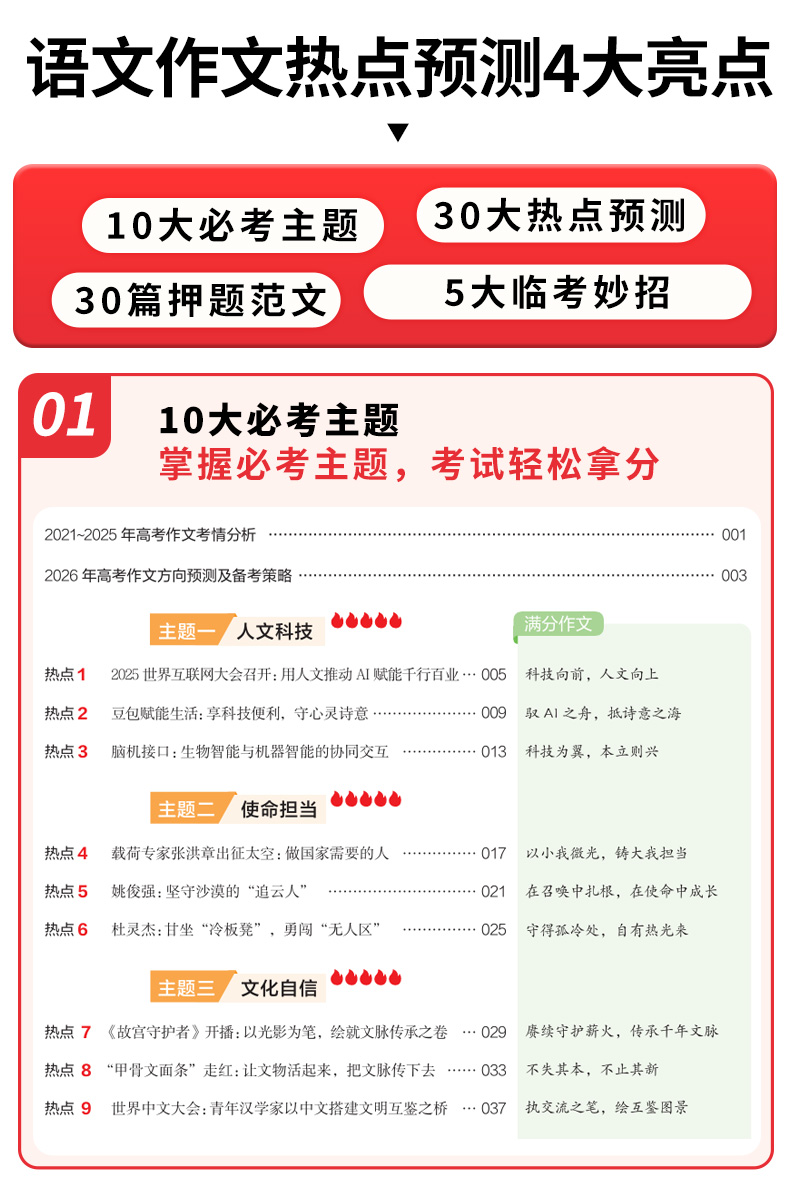 一本26新版【高考押题作文】语文英语热点预测押题范文赠临考妙招