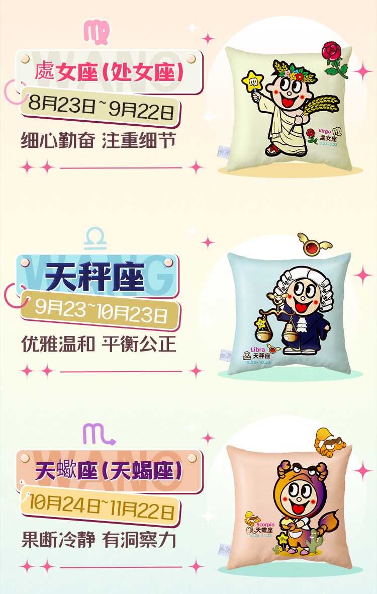 旺仔十二星座抱枕