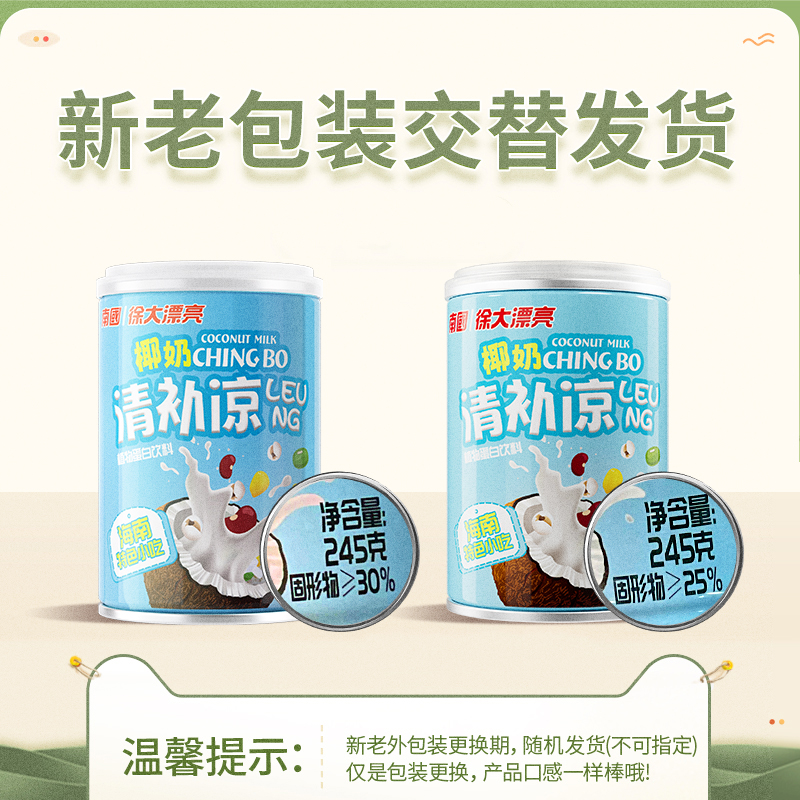 通知: 南国清补凉调整: 调整245g椰奶清补凉产品固形物比例。从原有固形物30% 下调至25%。目前固形物30%和固形物25%两种包装随机发货