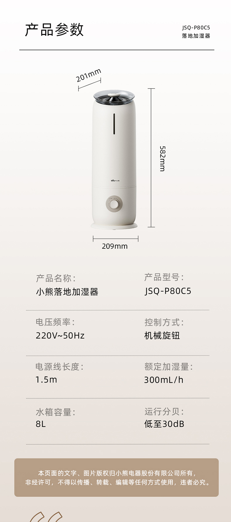 小熊加湿器JSQ-P80C5机械版—rxs