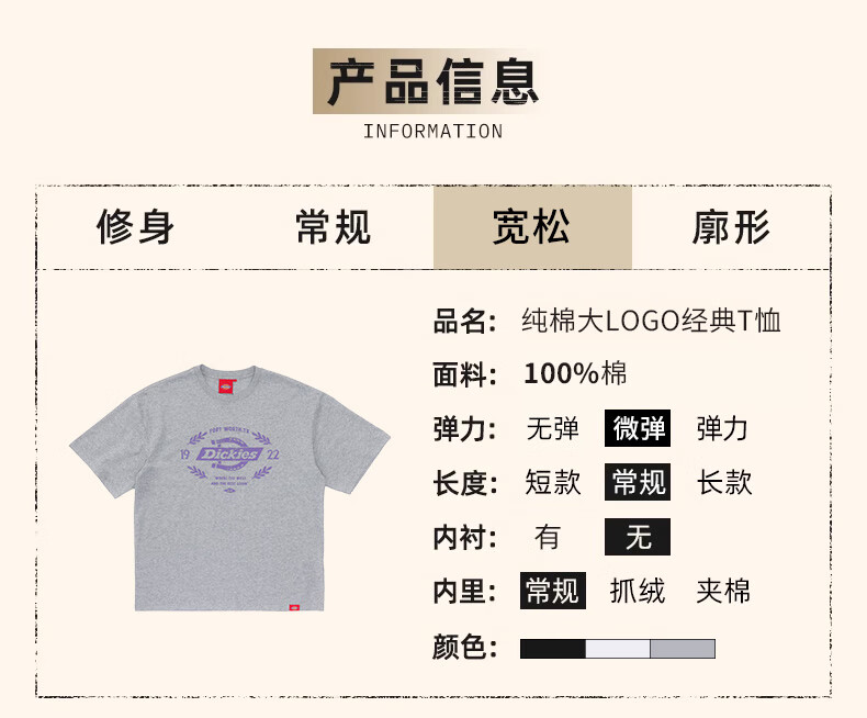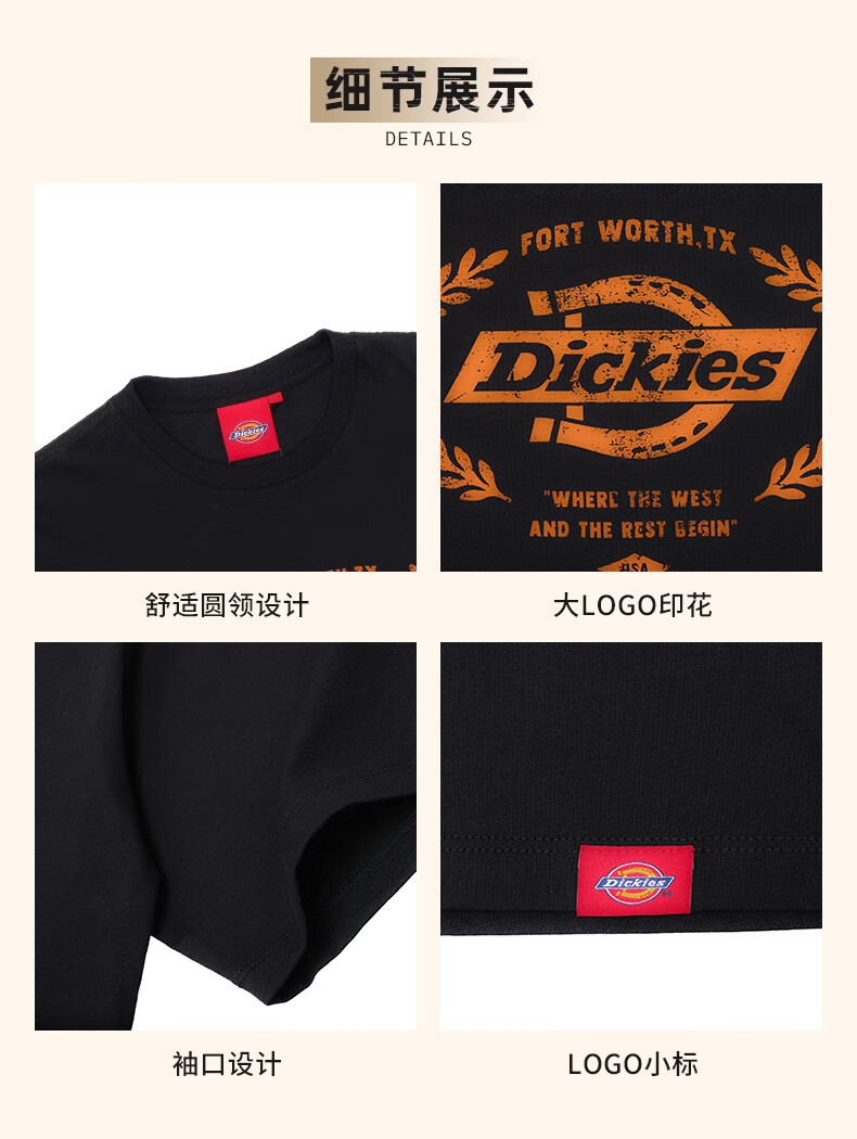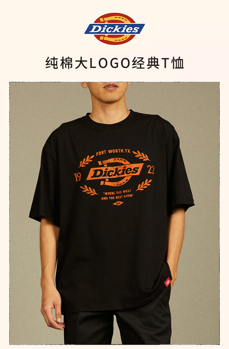 Dickies短袖T恤男 纯棉大LOGO经典情侣款 宽松易搭配DK012598