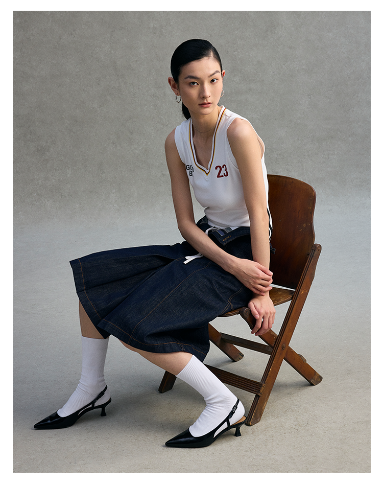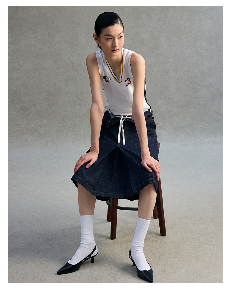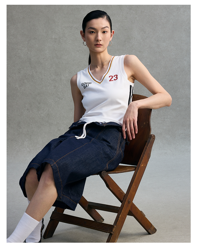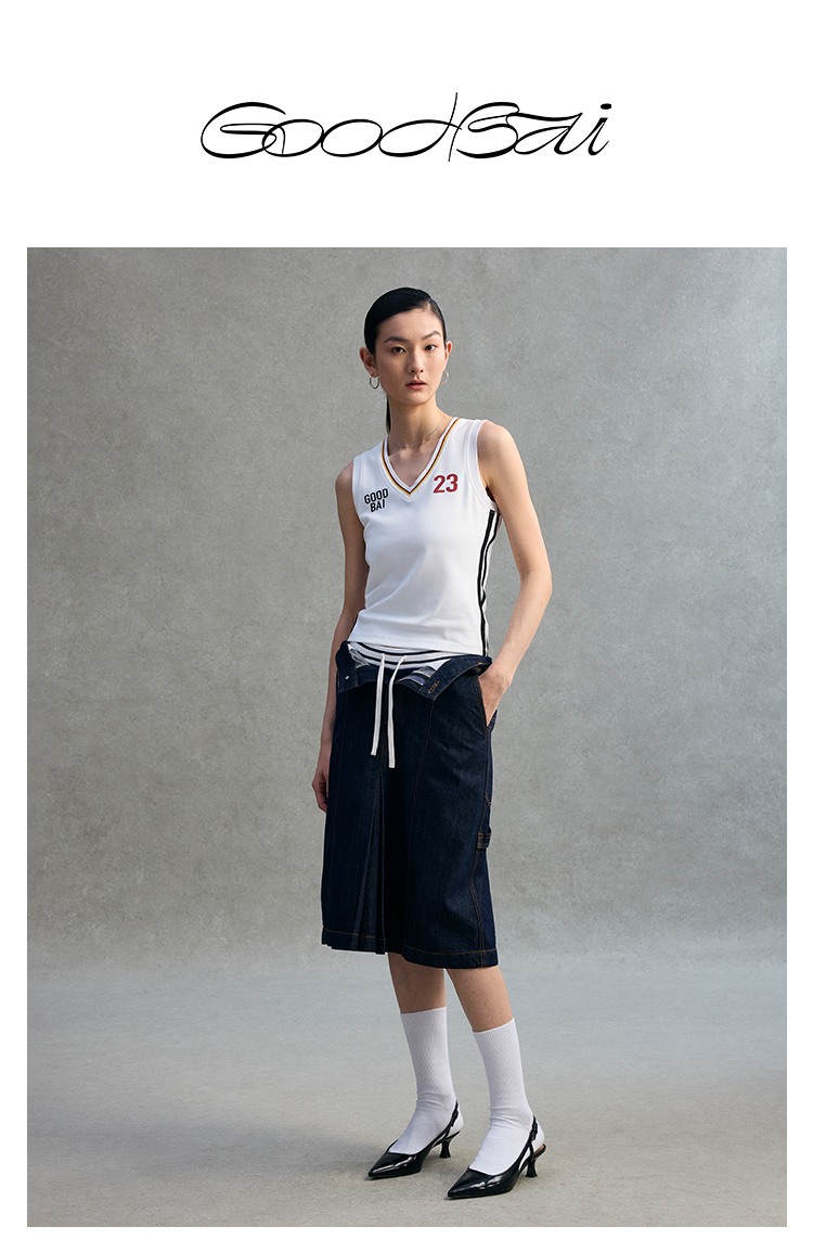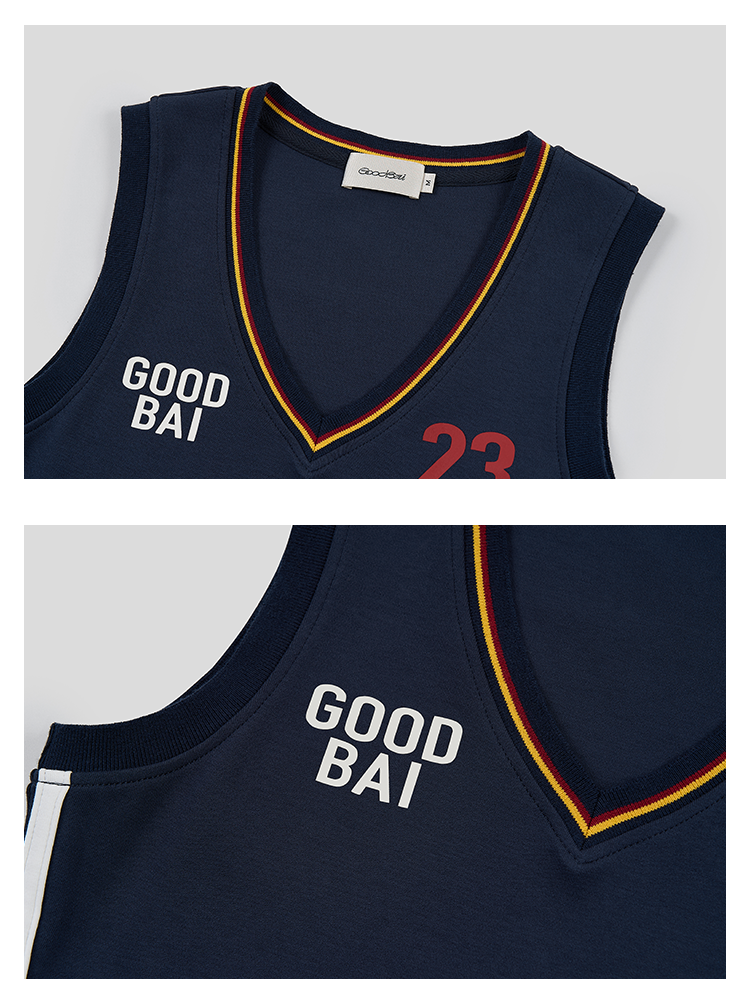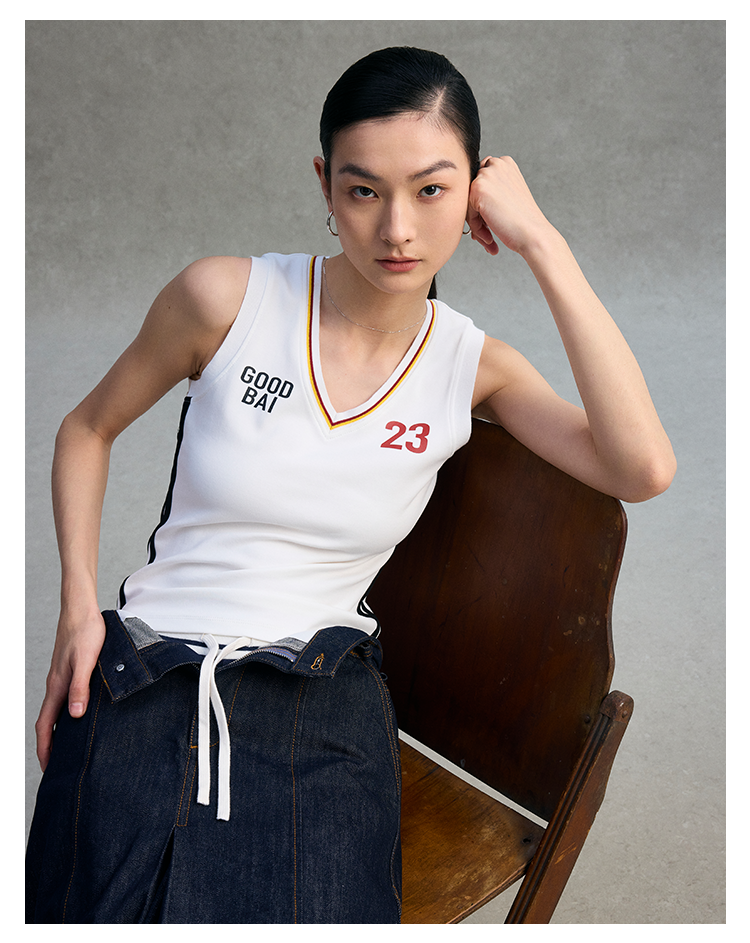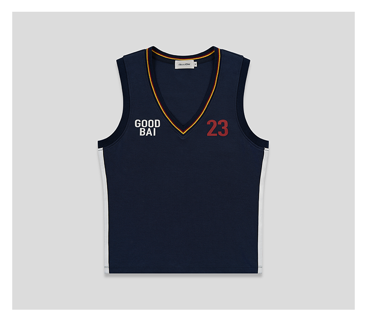 GOODBAI 粗体 23 logo印花彩虹罗纹V领紧身背心